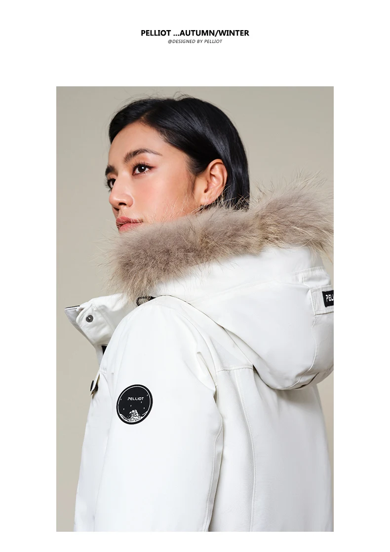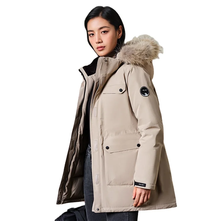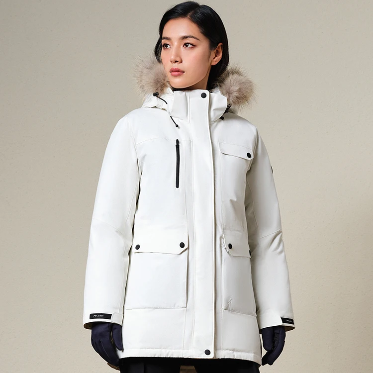 PELLIOT 90% White Goose Down Padding Water Repellent Outdoor Winter Warm Long Puffer Down Parka Jacket