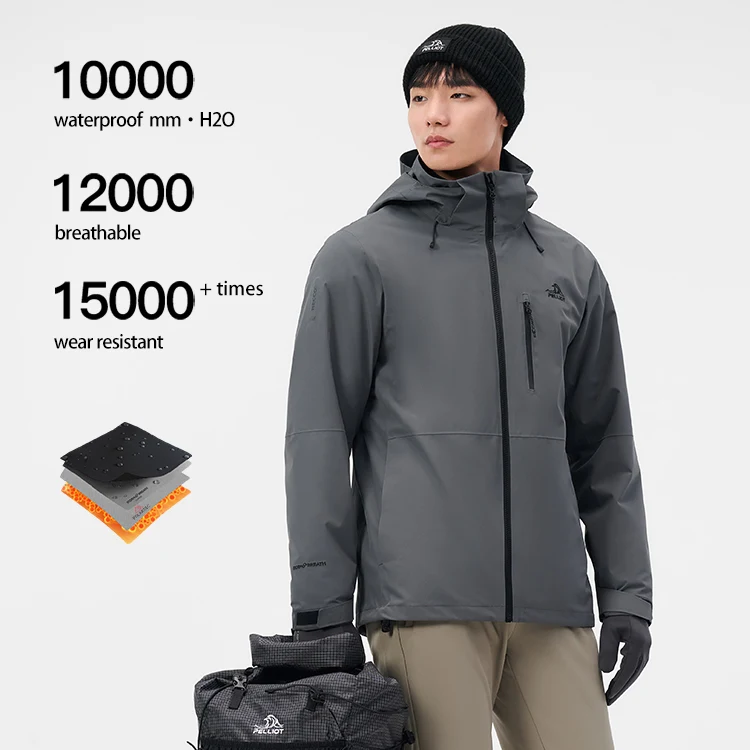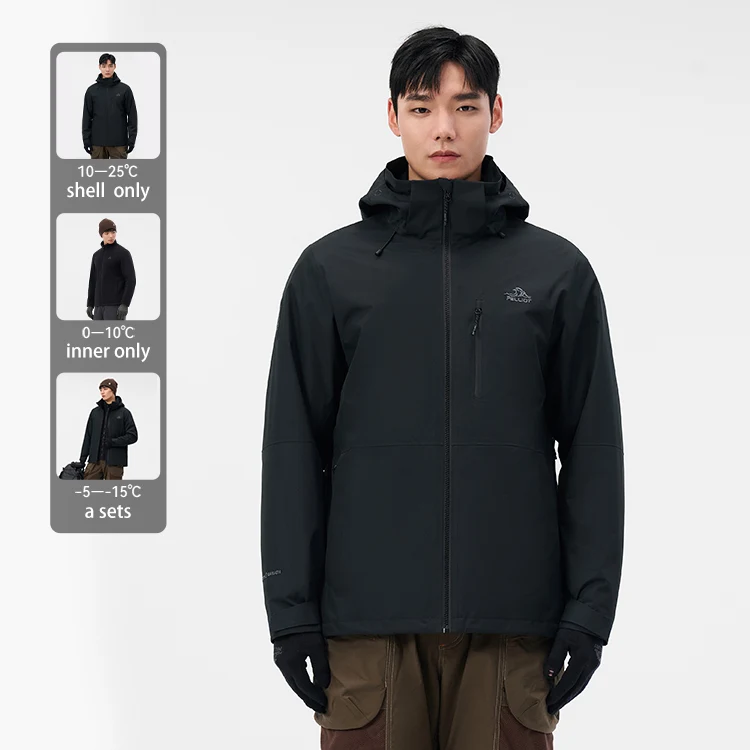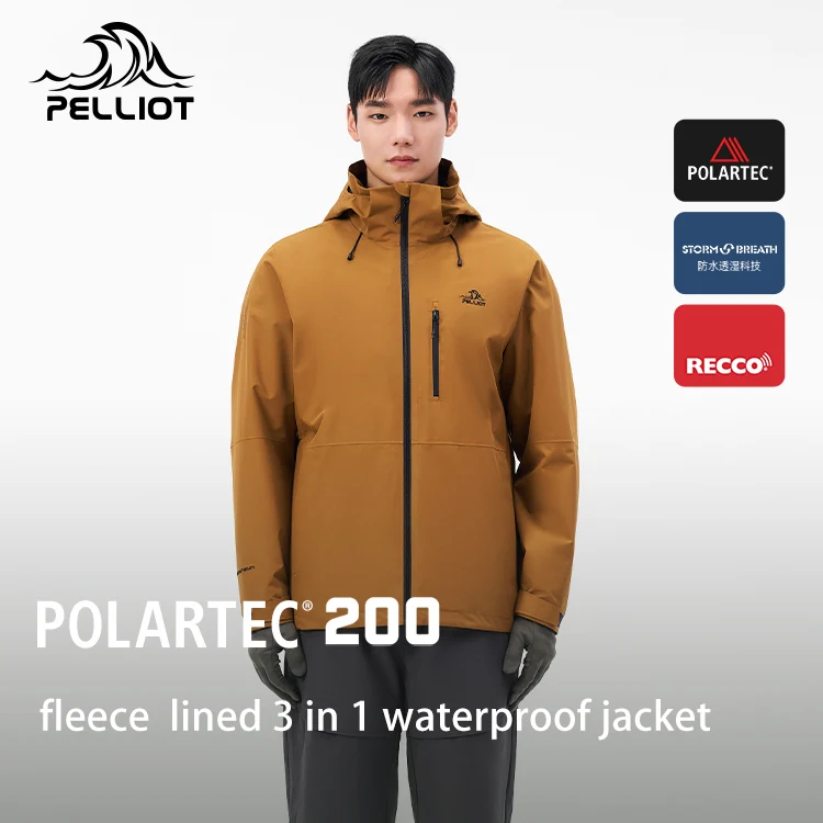 PELLIOT Men's Outdoor Winter Hiking Breathable Underarm Zippers 3 in 1 Polartec 200 Fleece Lined Waterproof Jacket