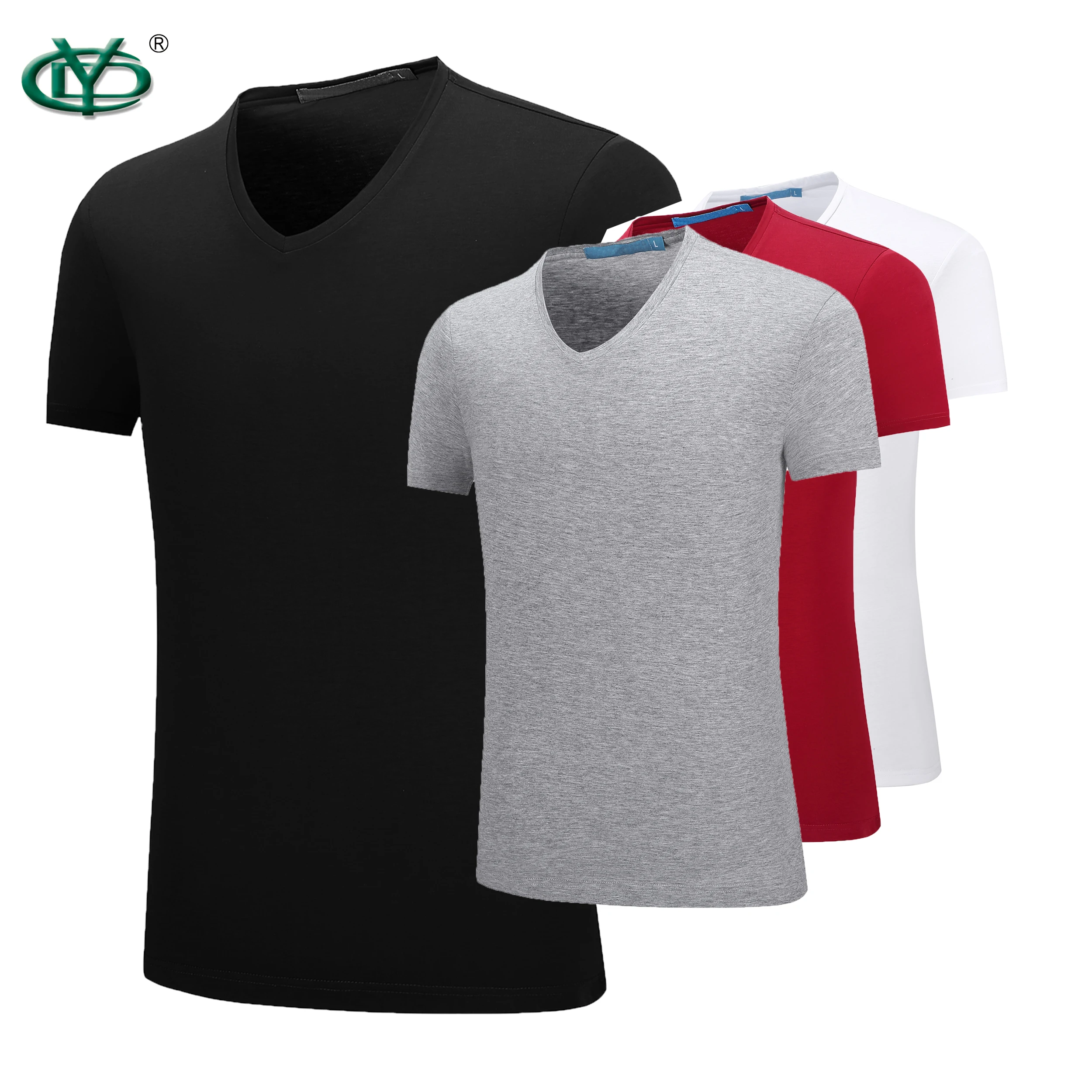 100% Cotton Strech Custom Printed logo V Neck Men t Shirts Supplier