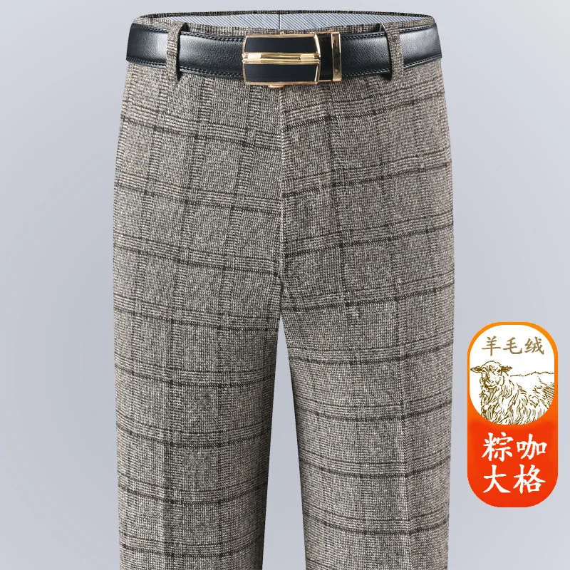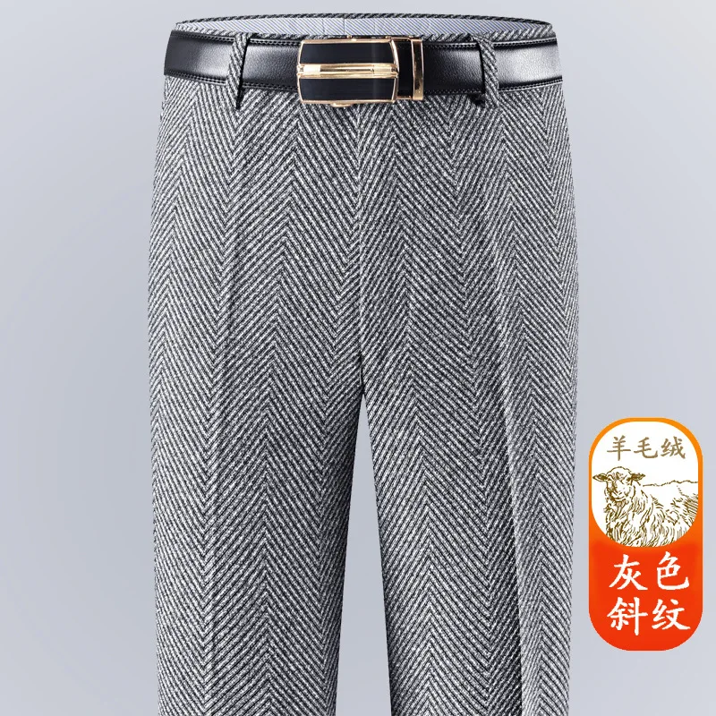 Autumn and Winter Men's Woolen Velvet Trousers Thickened Straight-leg Loose Middle-aged Business Casual Fashion Twill Pants