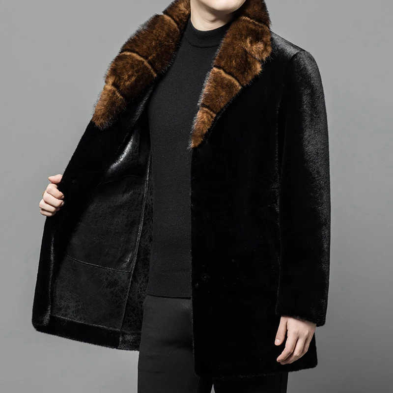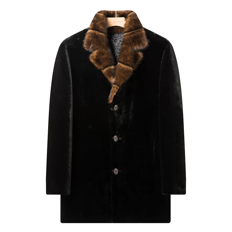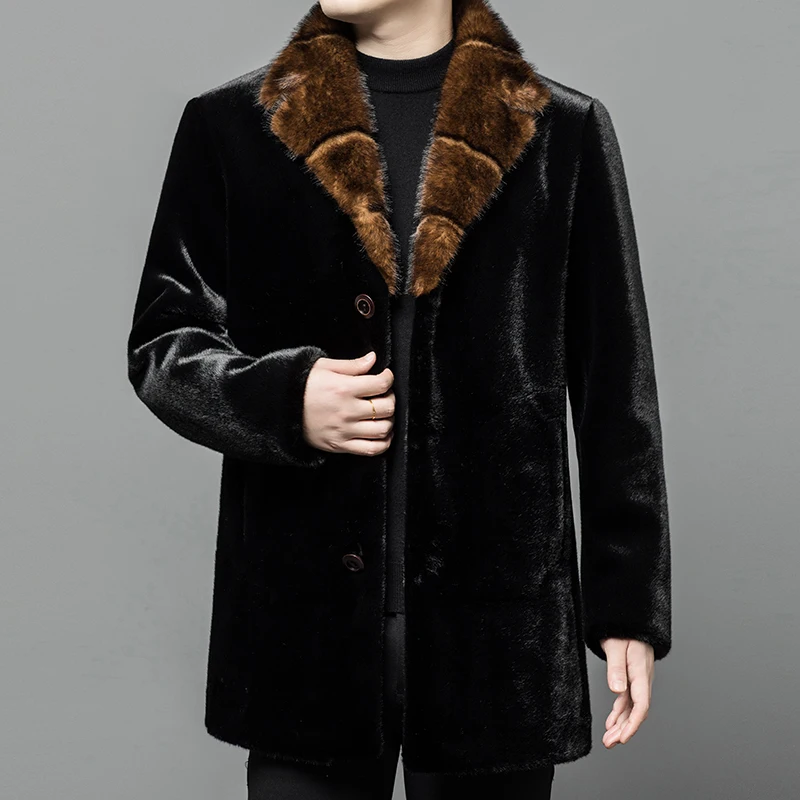 Wholesale Men'S Stylish Furry Fur Jacket Winter Turn Down Collar Comfortable Black Faux Fur Coat Men