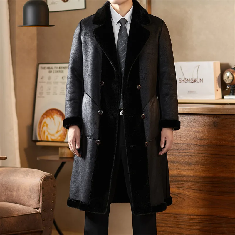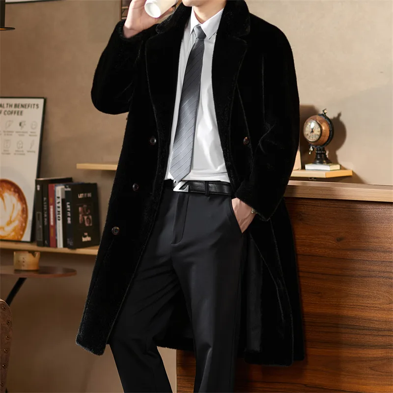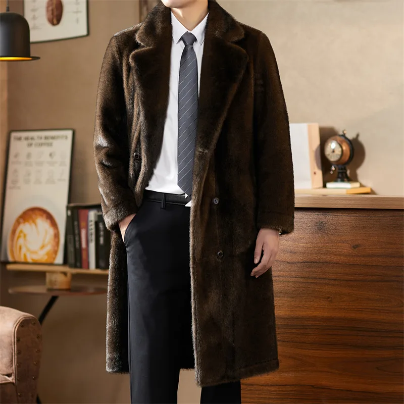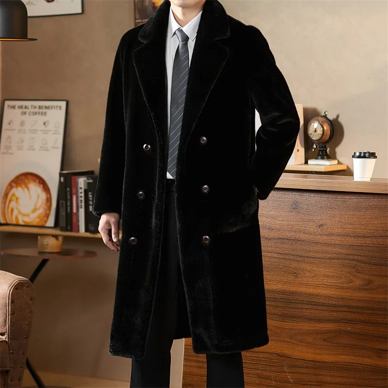 Cost-Effective Double-Faced Fake Mink Fur Overcoat Wholesale Mens Fashionable Long Black Faux Fur Coat