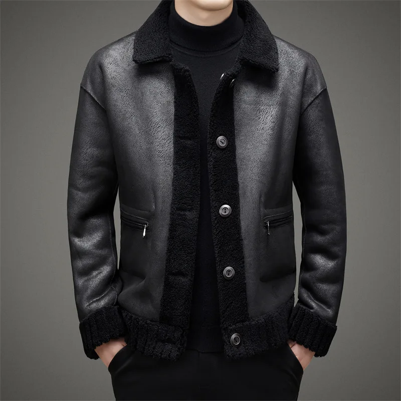 Wool Jacket Sheepskin Coat Leather Jacket Men's Fur Coat Badge A2 Bomber Jacket