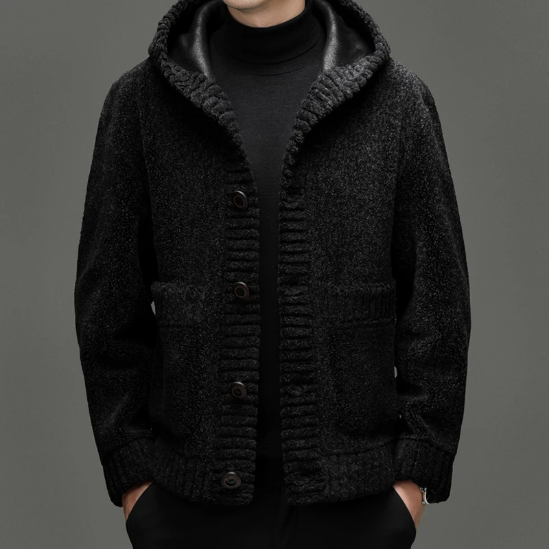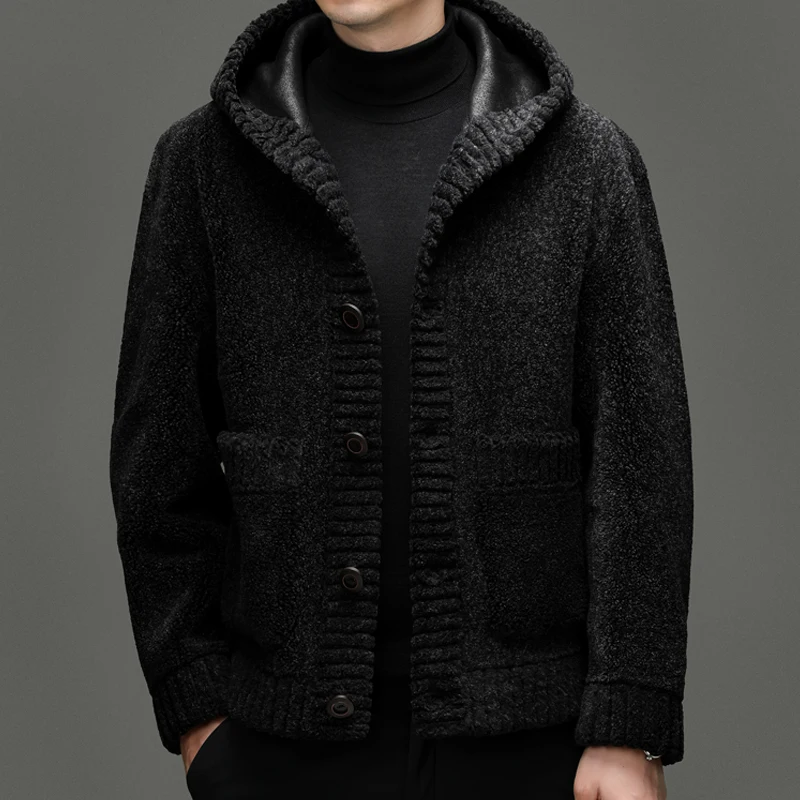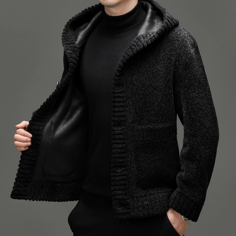 New Arrival Solid Color Men's Warm Hooded Fleece Wool Jacket Popular Black Winter Wool Coat for Men
