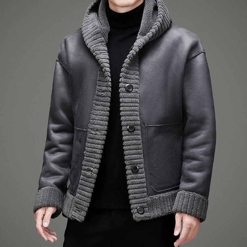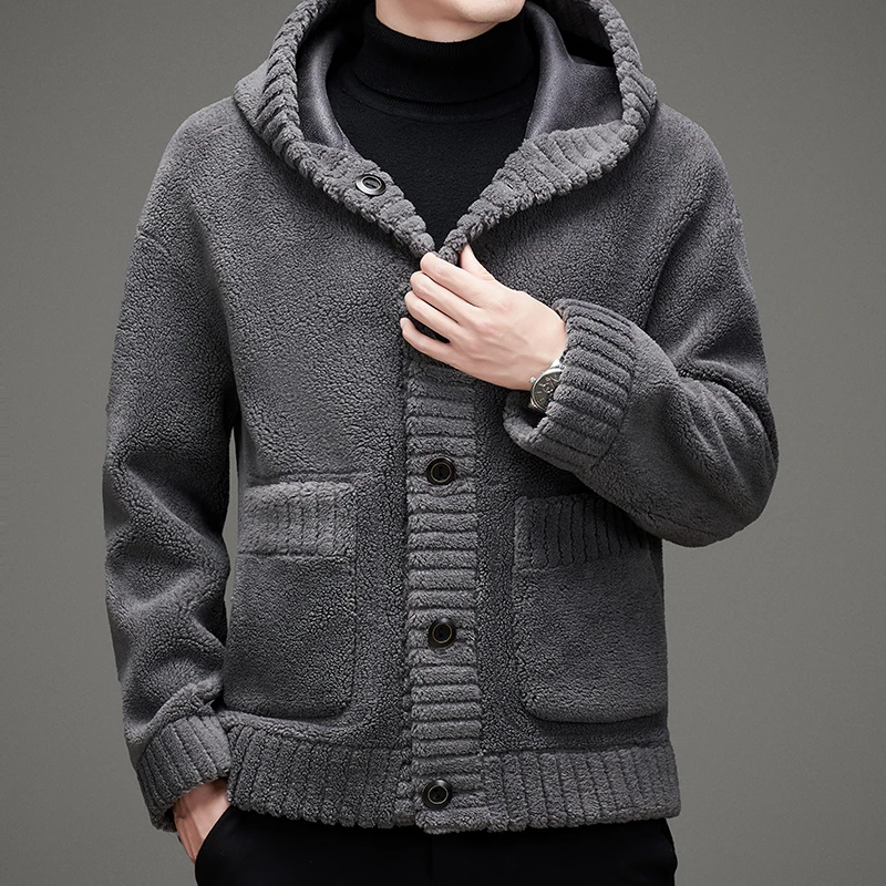 Cost-Effective Hooded Single Breasted Reversible Wool Blend Outwear Men's Casual Teddy Fleece Jacket