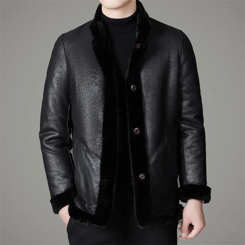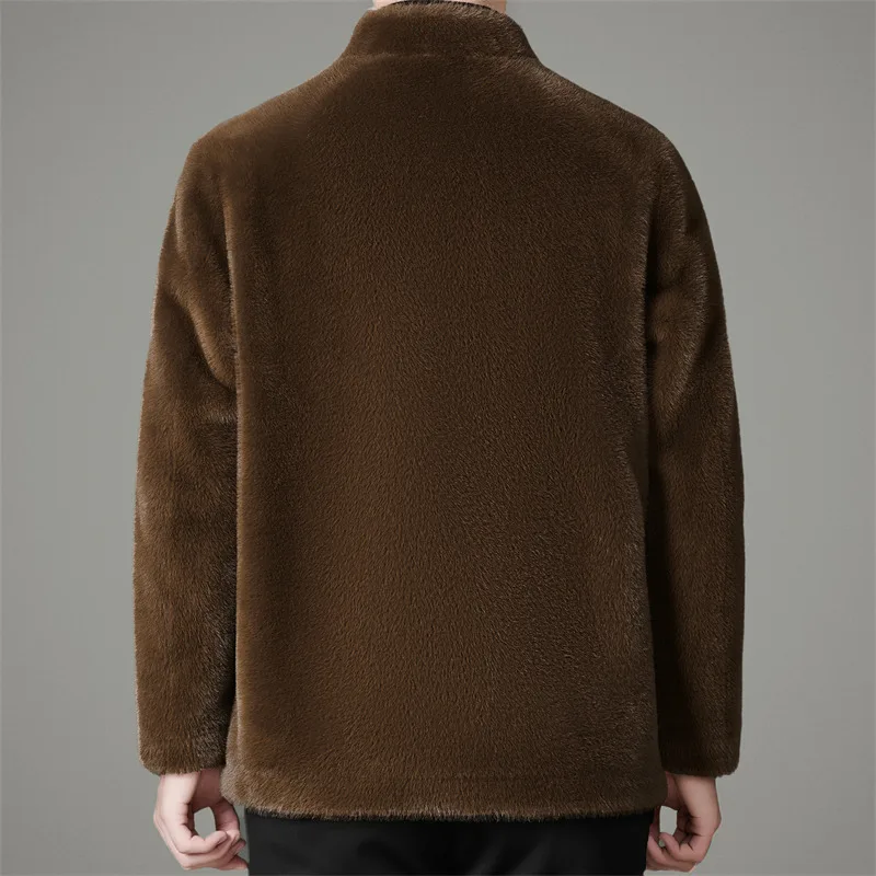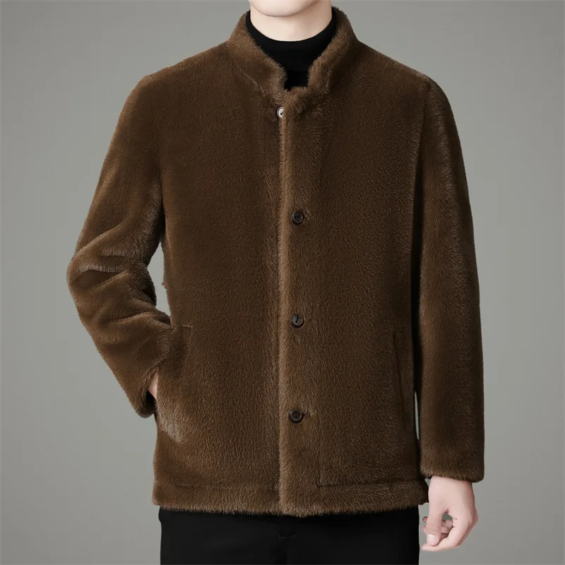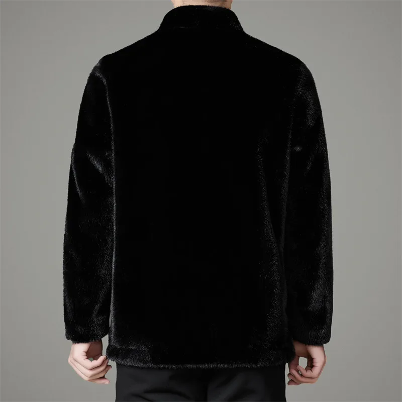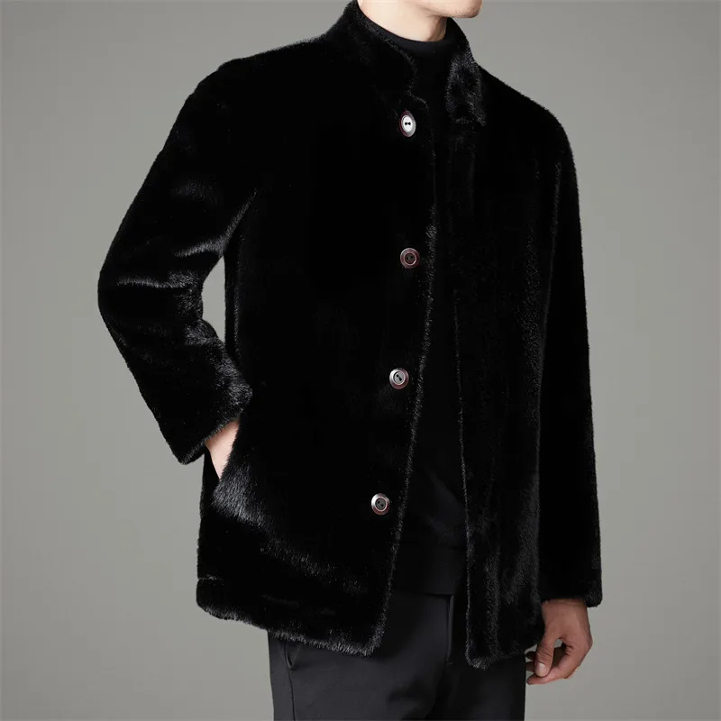 New Style Winter Fall Furry Fur Jacket Luxury Leisure Stand Collar Black Faux Fur Coat Men