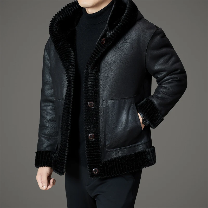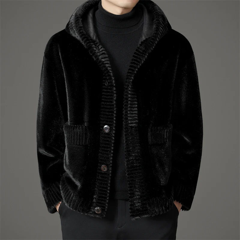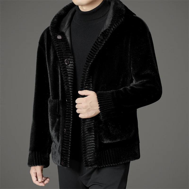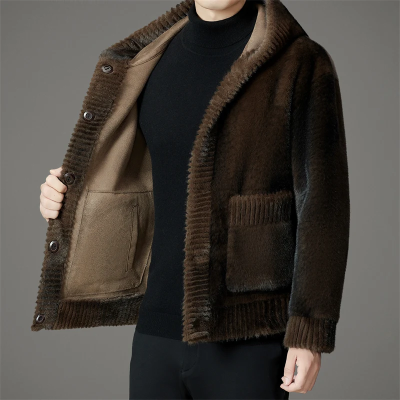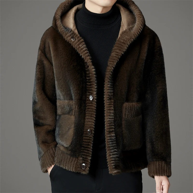 Winter Fashion Reversible Outerwear Men's Casual Style Comfortable Faux Mink Fur Coat With Hood