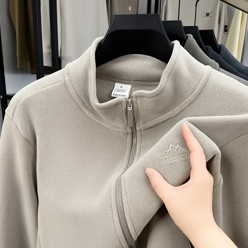 Men's Lightweight Warm Stand Collar Fleece Jacket with Zip Front for Outdoor Hiking Camping & Sports