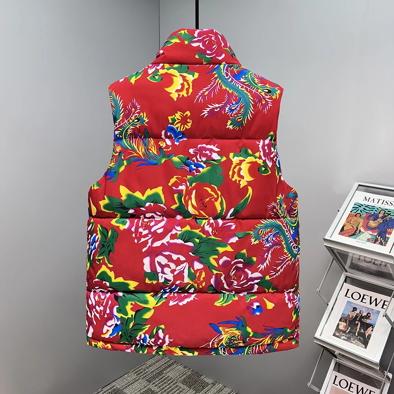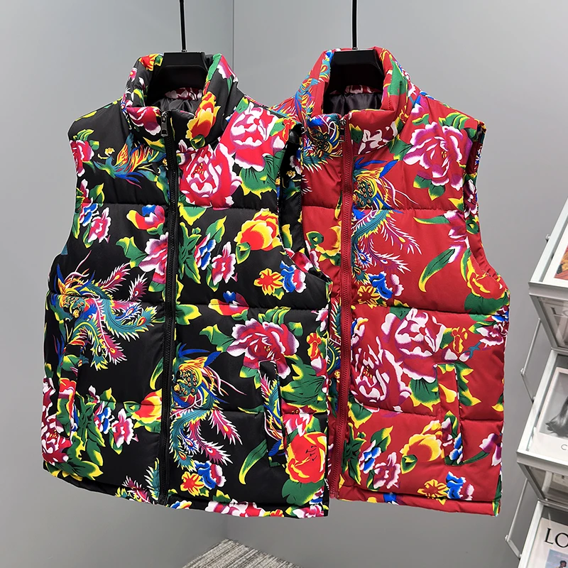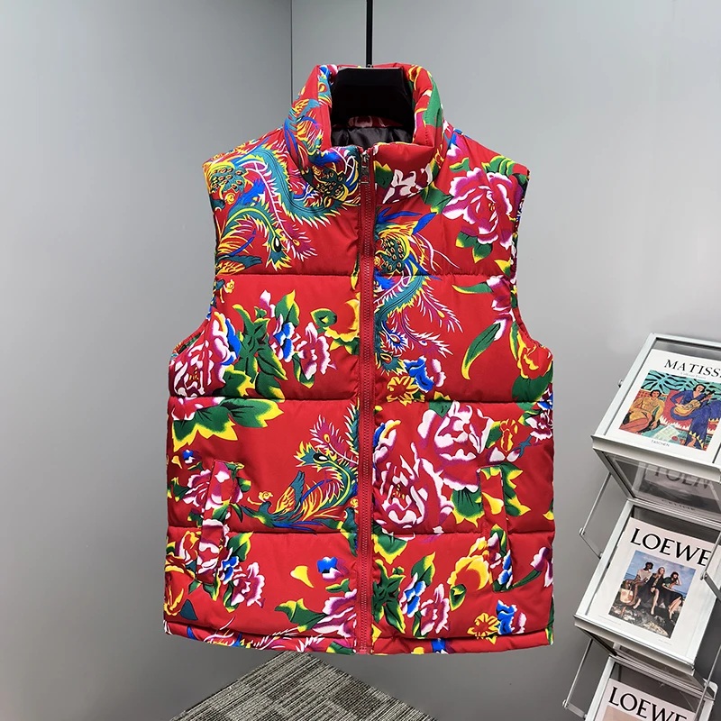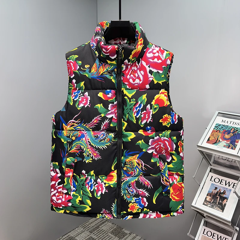 Men's Chinese-Style Stand-Up Collar Thick Winter Cotton Jacket with Floral Pattern Design Versatile for All Occasions