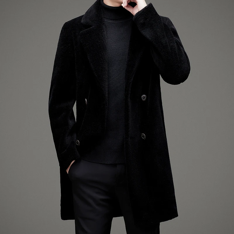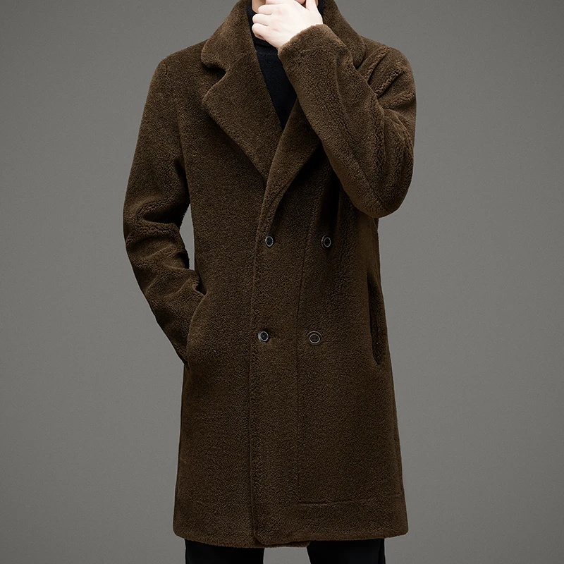 Wholesale Winter Fashion Windproof Overcoat Men Long Shearling Suede Leather Jacket