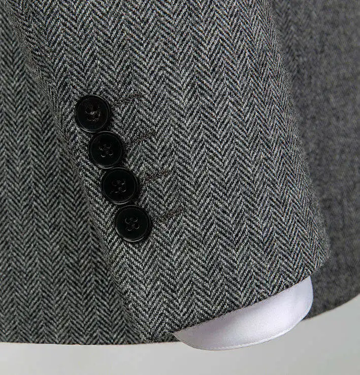 OEM Custom Men's 50% Wool Grey 3 Pieces Slim Business Zipper Closure V-neck Double Vents High Quality Plus Size Set Men's Suits