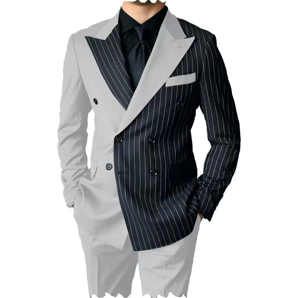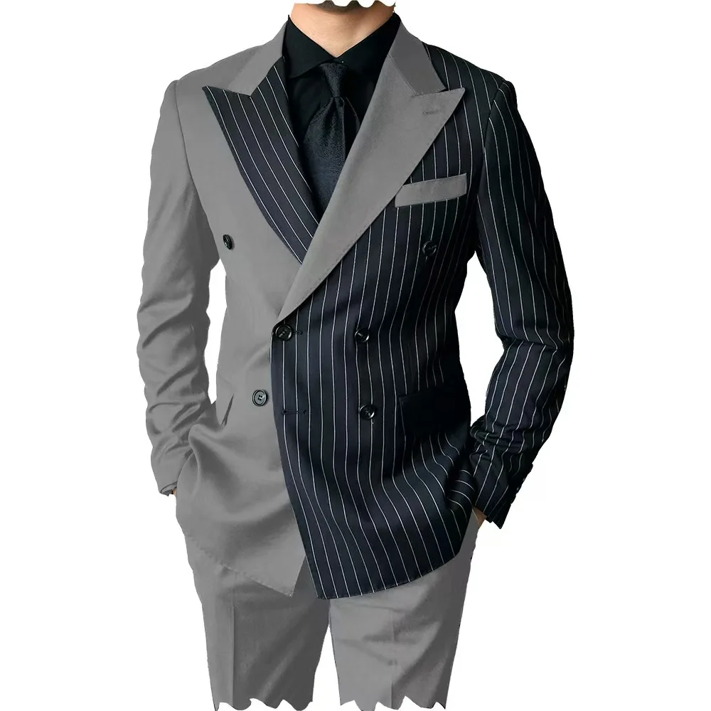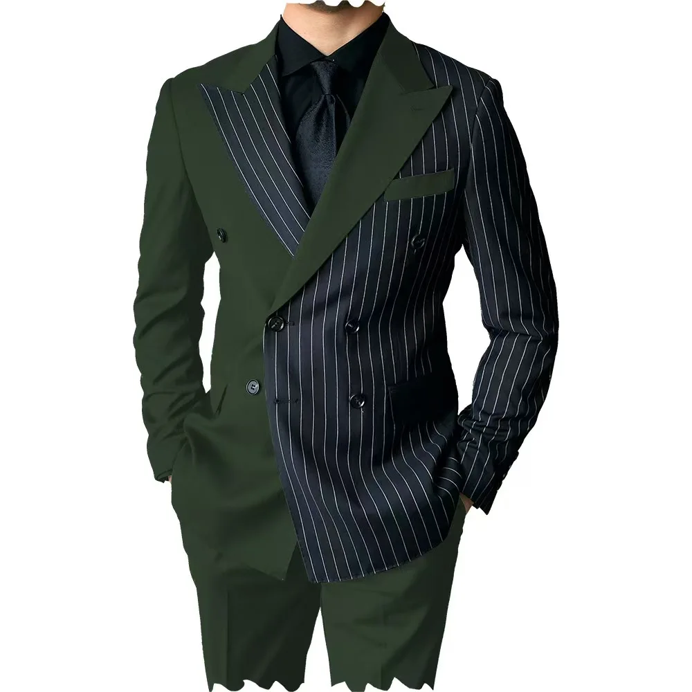 2026 Trendy High Quality Plus Size 3 Pieces Sets Men's Italian Style Suit Cyan Stripes Solid Color Casual Business Party Suit