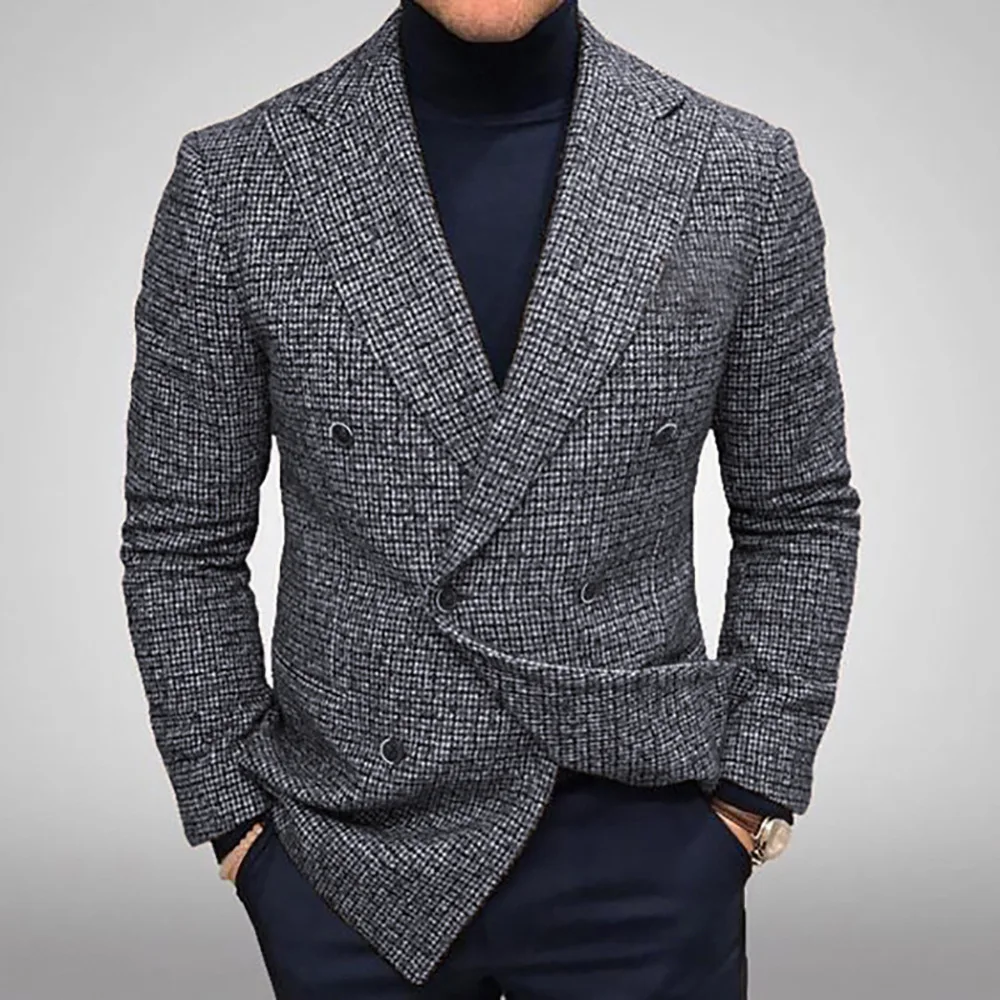 High Quality Business Men's Plus Size Single Breasted Flat Coat Anti-Wrinkle Breathable Waterproof Viscose/Polyester Notched