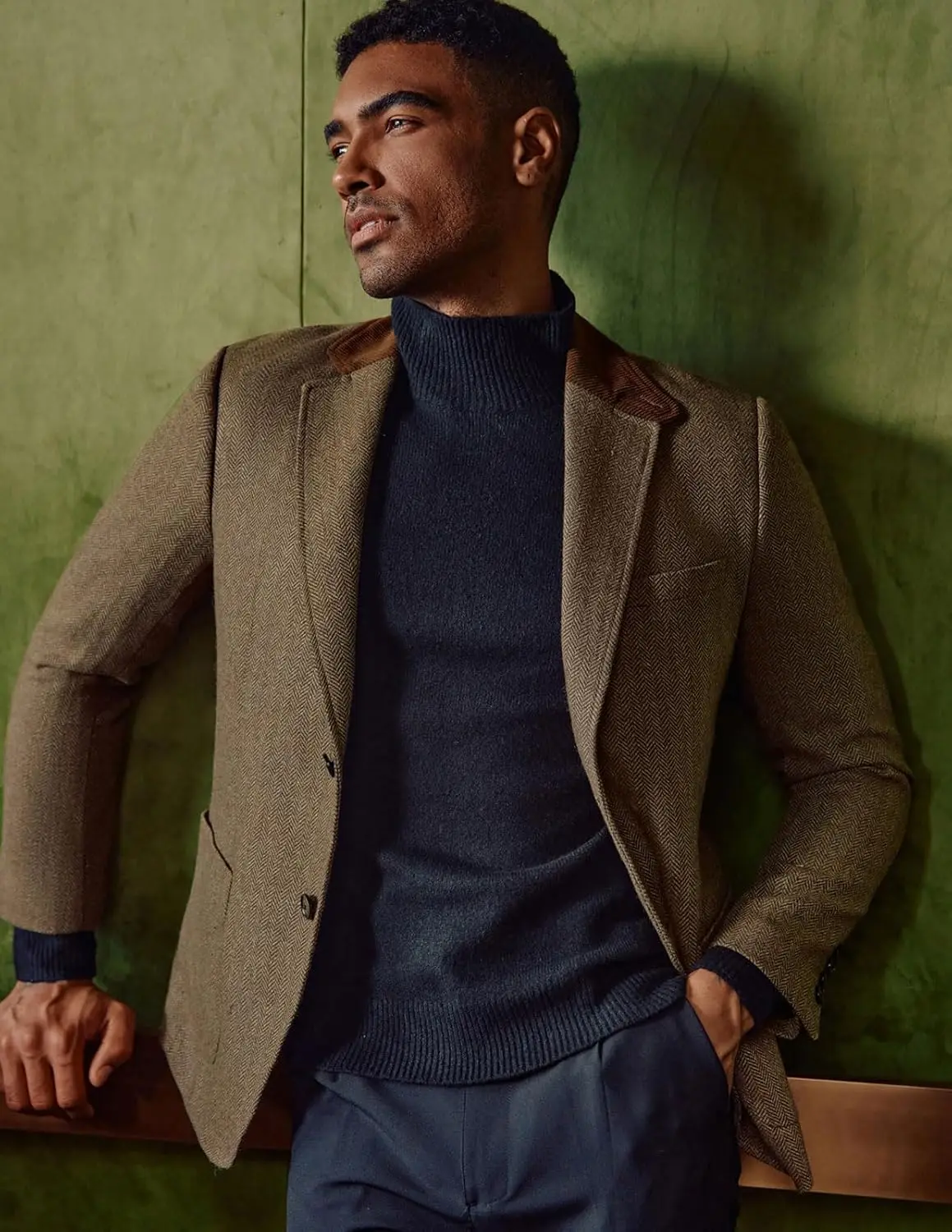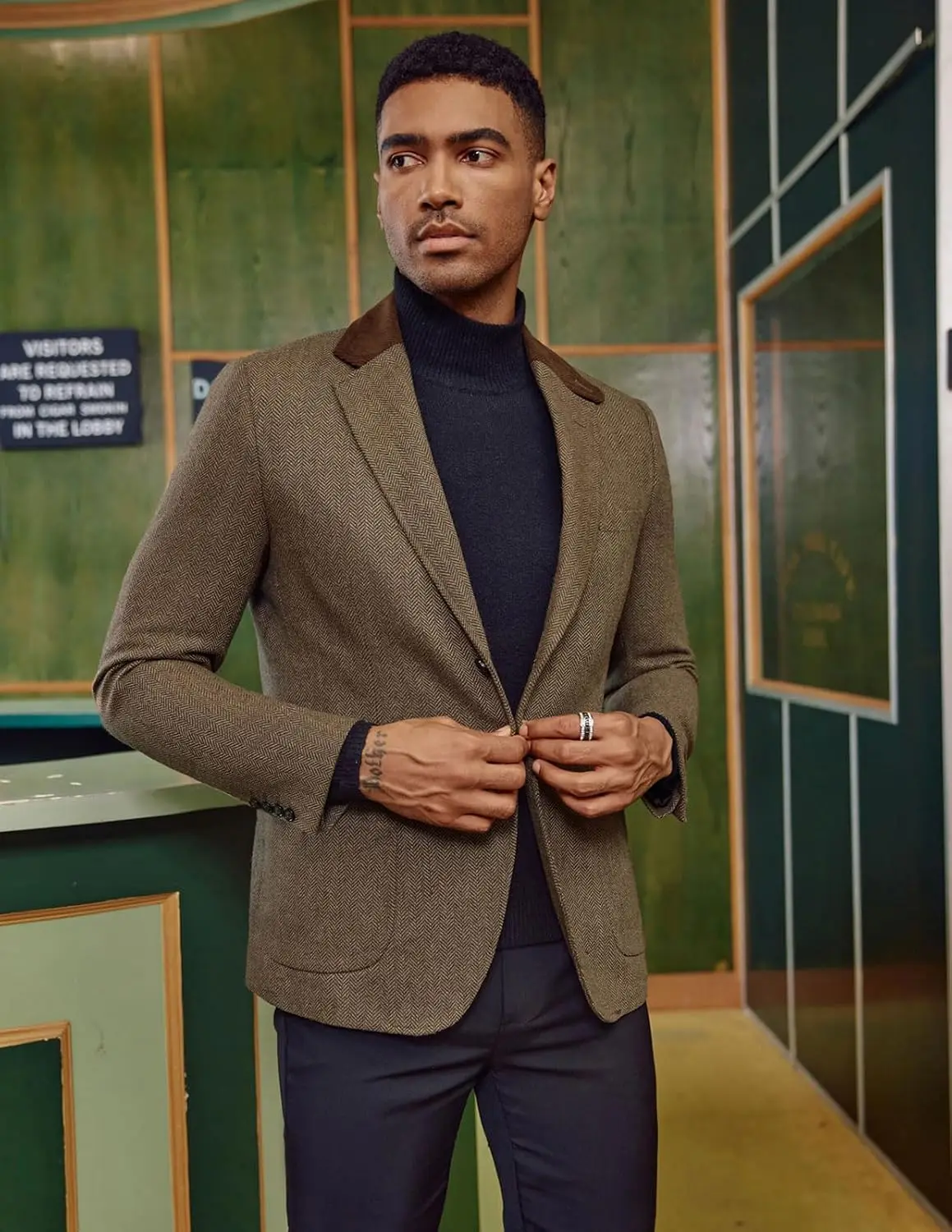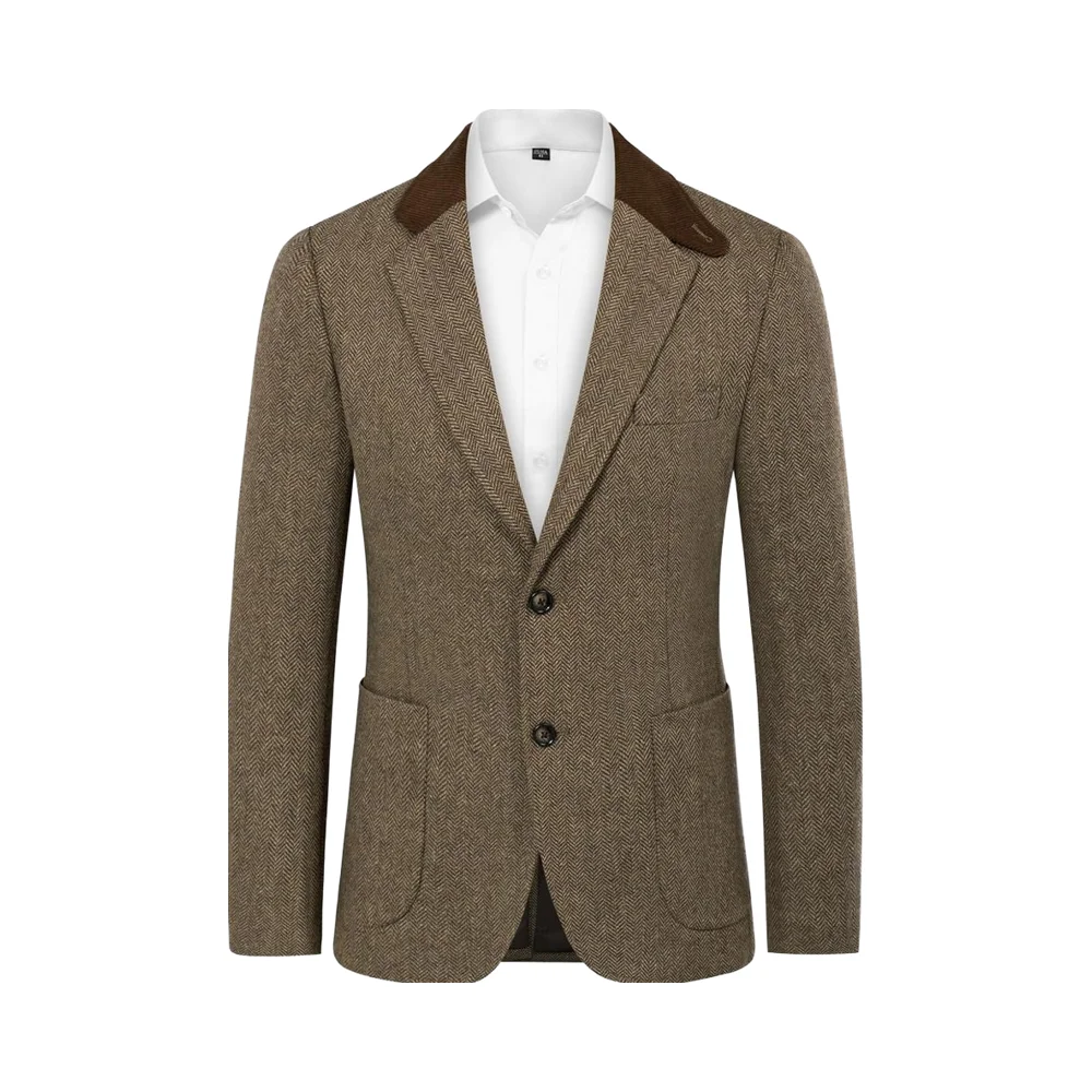 Men's Plus Size Single Breasted Button Fly Flat Front Herringbone Vintage Tweed Wool Blend Waterproof Breathable Business Sport
