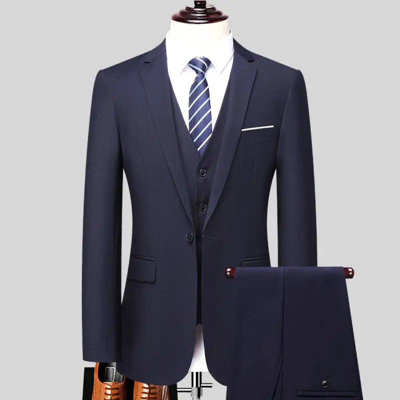 2026 Men's Three-piece Business Formal Suit Set Korean Style Slim-fitting Velour Woven Outerwear