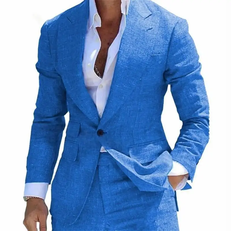 Costume Summer Velour Blue Beach Wedding Double Breasted Tuxedos Peaked Lapel Groom Wear Formal Best Man Business