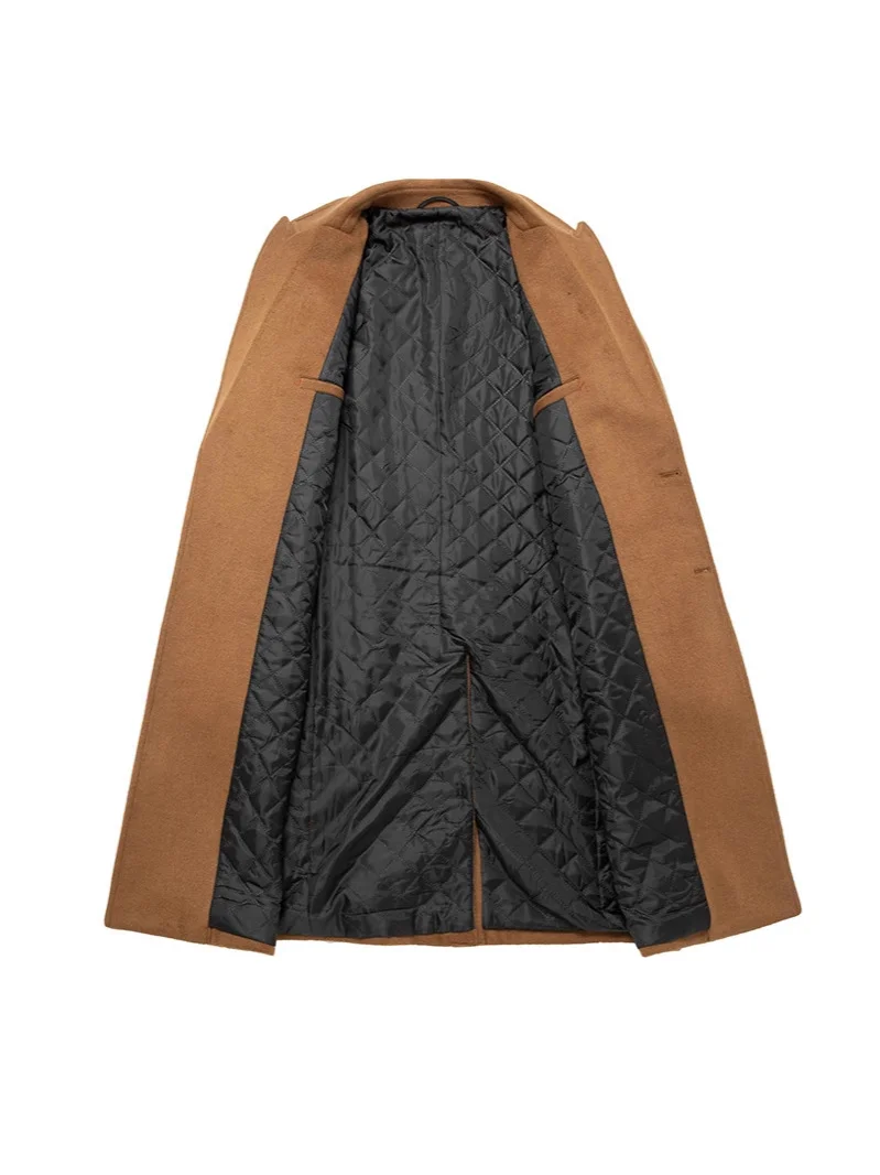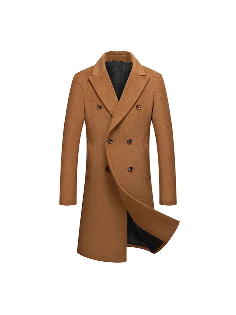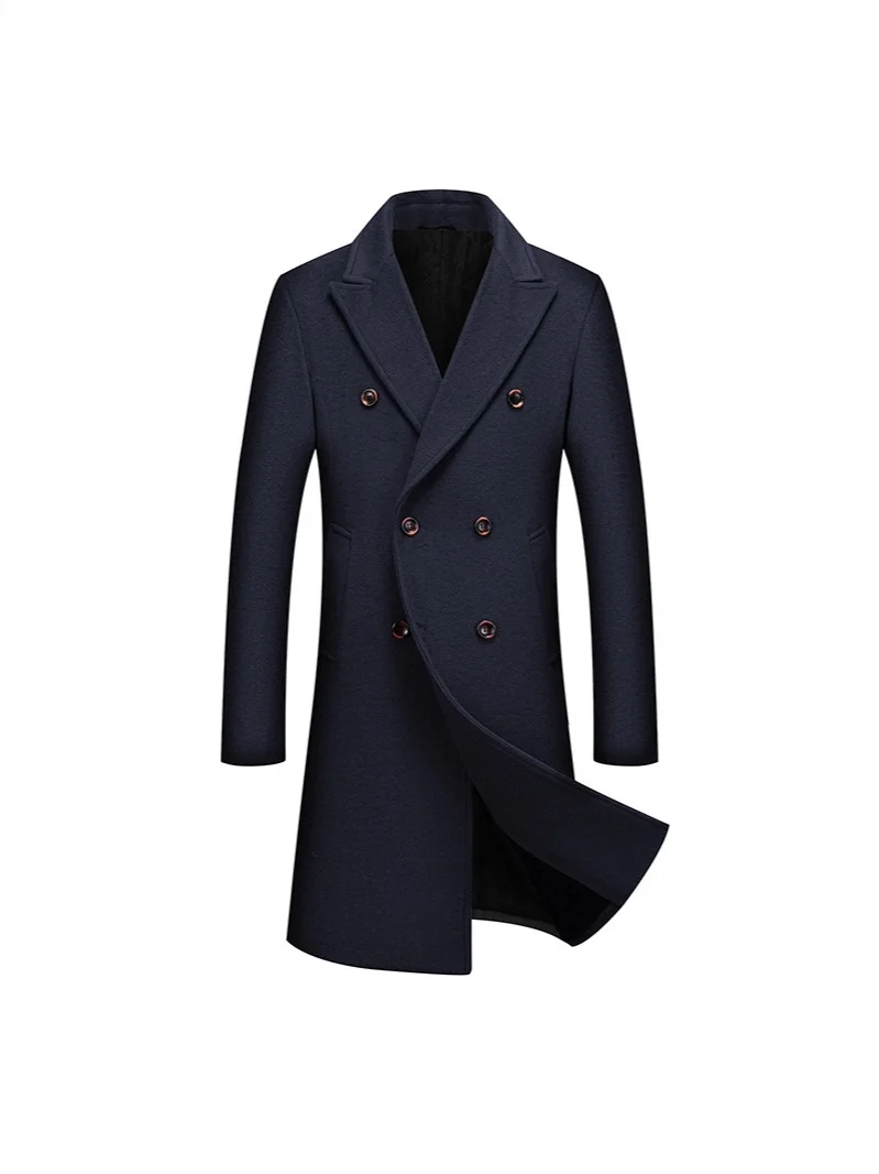 Royal Blue Men's Mandarin Collar Double Breasted Flat Front Plus Size Polyester/Cotton Blazer Long Winter Overcoat Groom Wedding