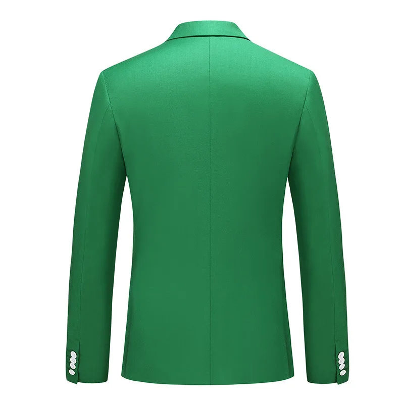 Factory Customized Men's Green Double-breasted Two-piece Slim-fit Business Suits Zipper Closure Beaded Detail Solid Plus Size