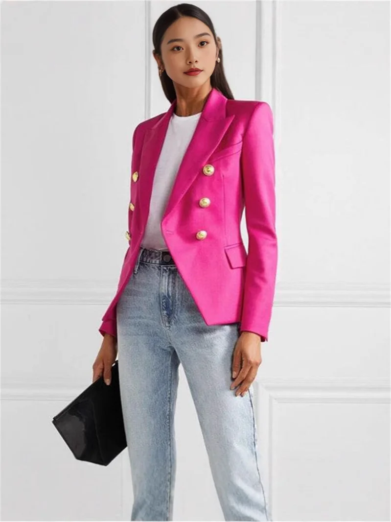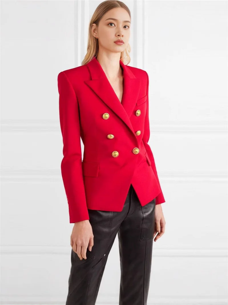 2026 Autumn Women's Double Breasted Solid Blazer Viscose/Polyester Classic Office Button Decoration Wholesale Jacket Suits