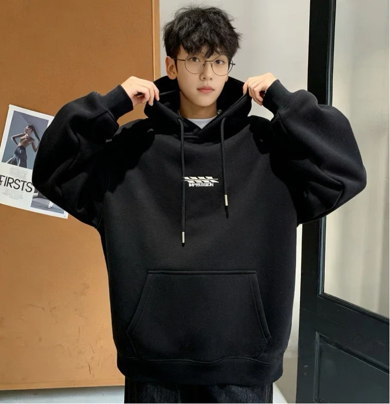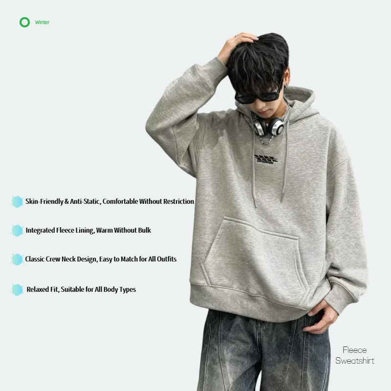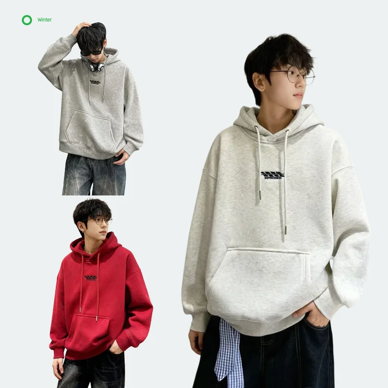 Christmas Teen Boys Solid Winter Fleece-Lined Hooded Cozy Fleece Sweatshirt Cotton Polyester Blend Warm Pullover