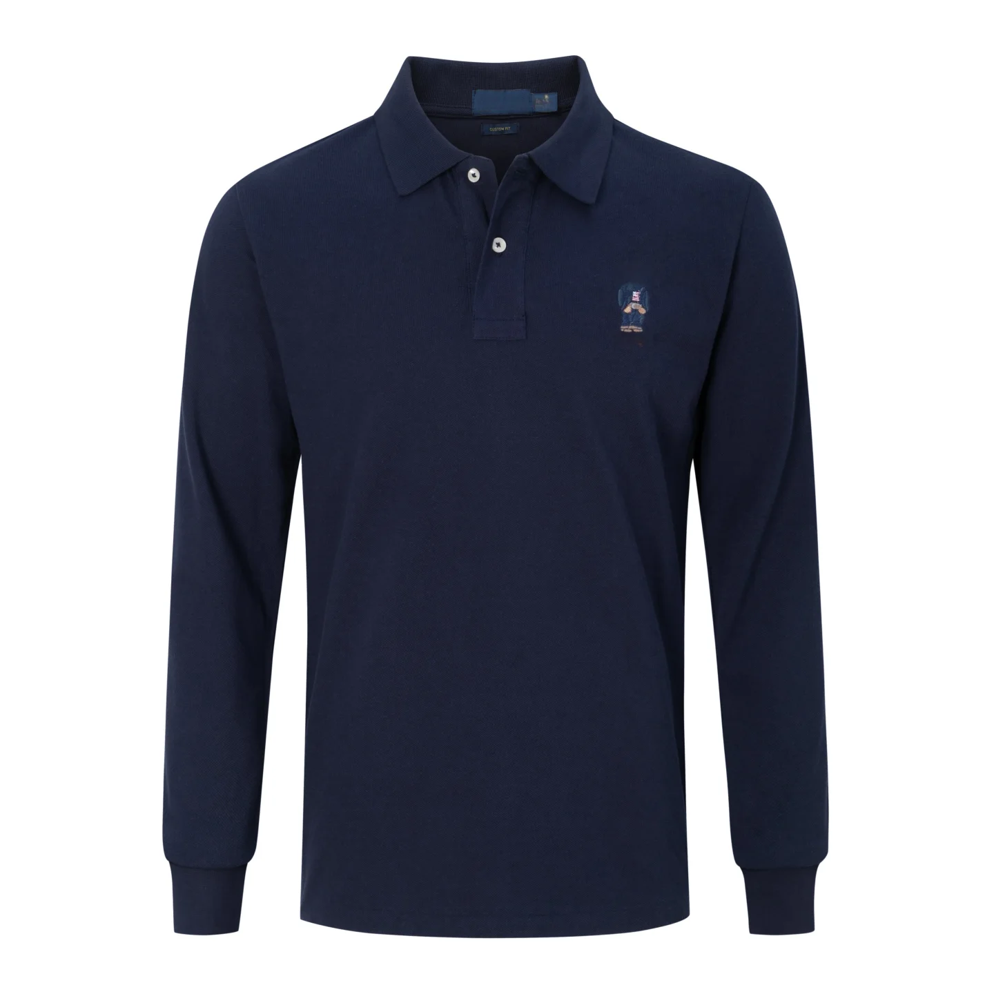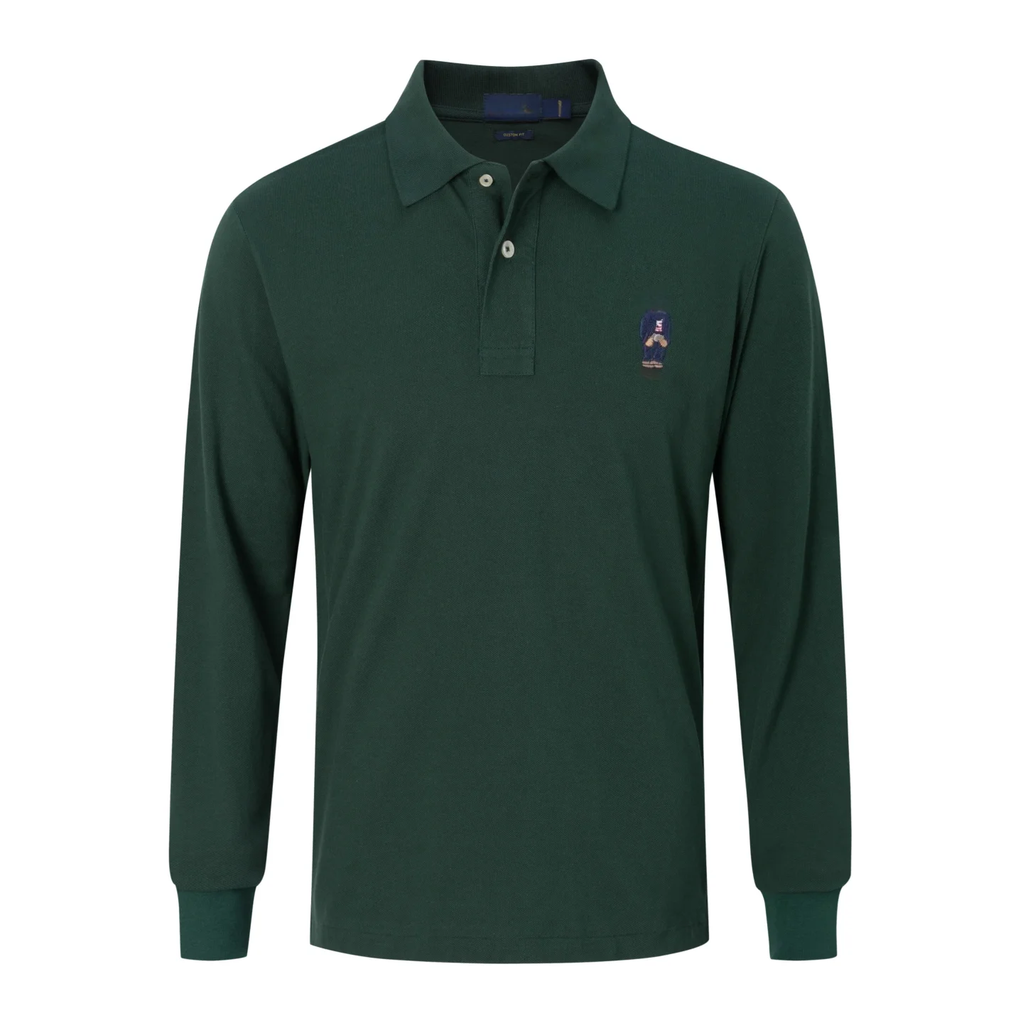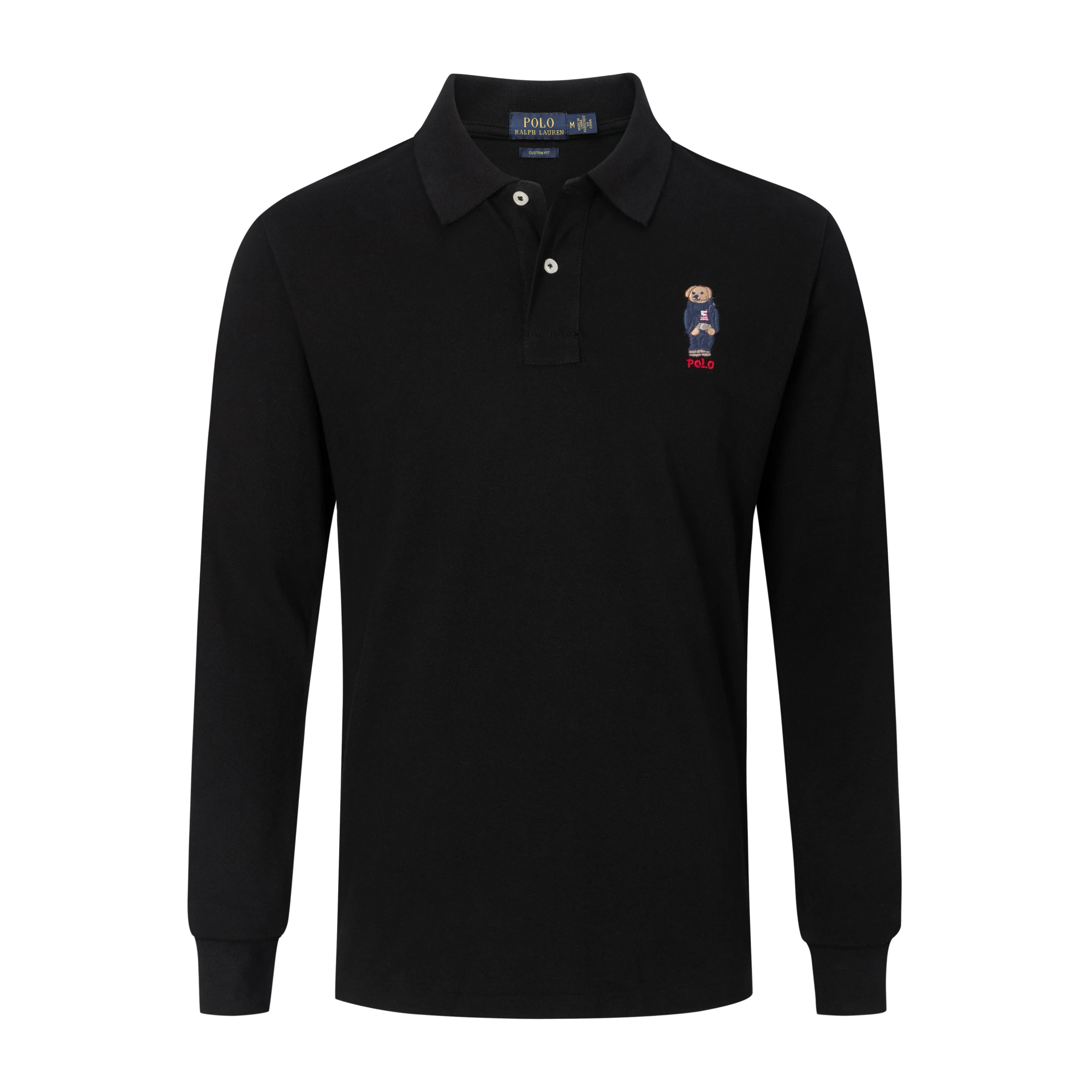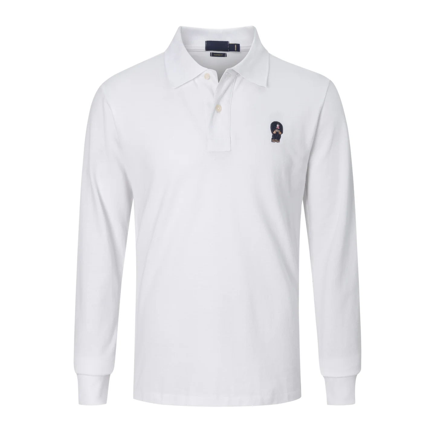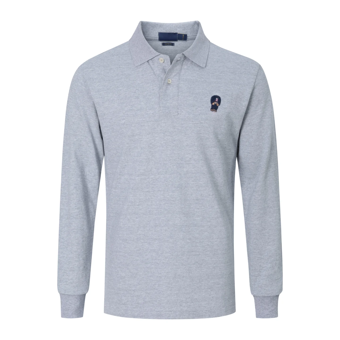 High-quality Men's Polo Shirts 100% Pure Cotton Spring and Autumn Casual Bear-embroidered Breathable Long-sleeved T-shirts Ralph