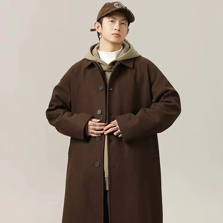 OEM ODM Autumn Winter Japanese Style Over-Knee Wool Coat for Men Double-Sided Single Breasted Customizable R&D Wholesale Sample
