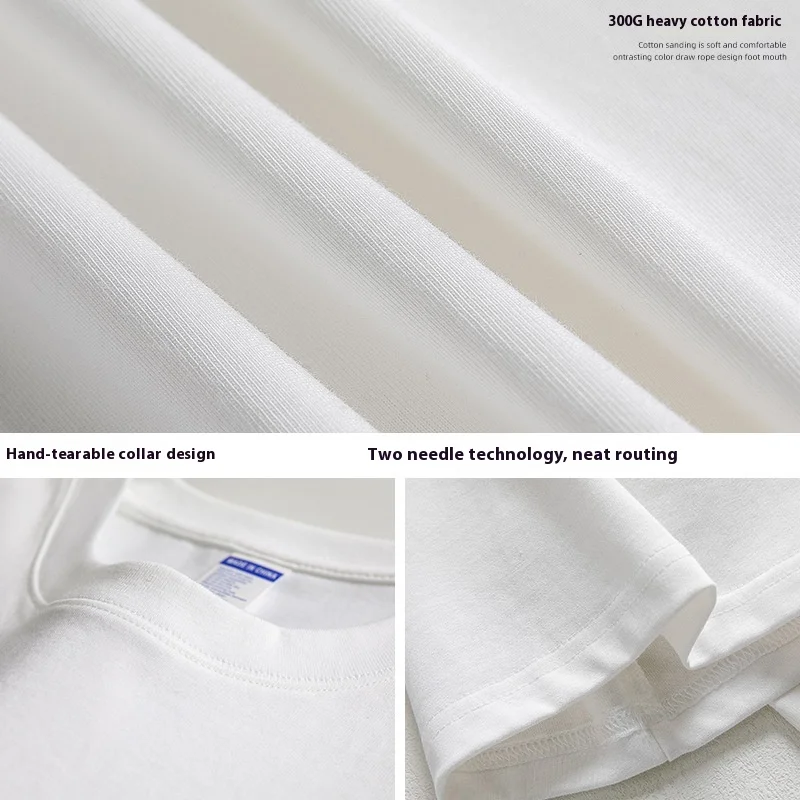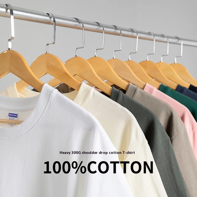 OEM & ODM 300g Heavy Texture 100% Cotton Short Sleeve T-Shirt for Men and Women Basic Loose Solid Color Blank Design