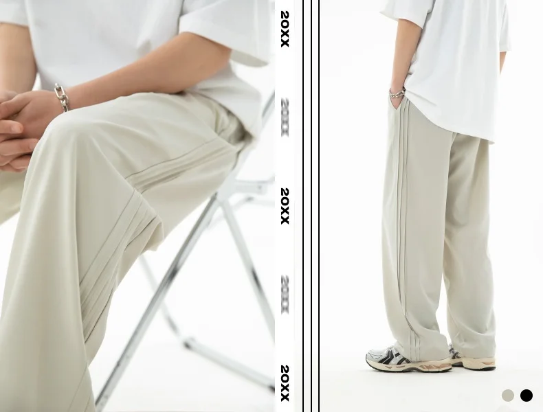 OEM & ODM ProductionHigh-End Men's Ice Silk Pants Lightweight Elastic Waist Loose Straight
