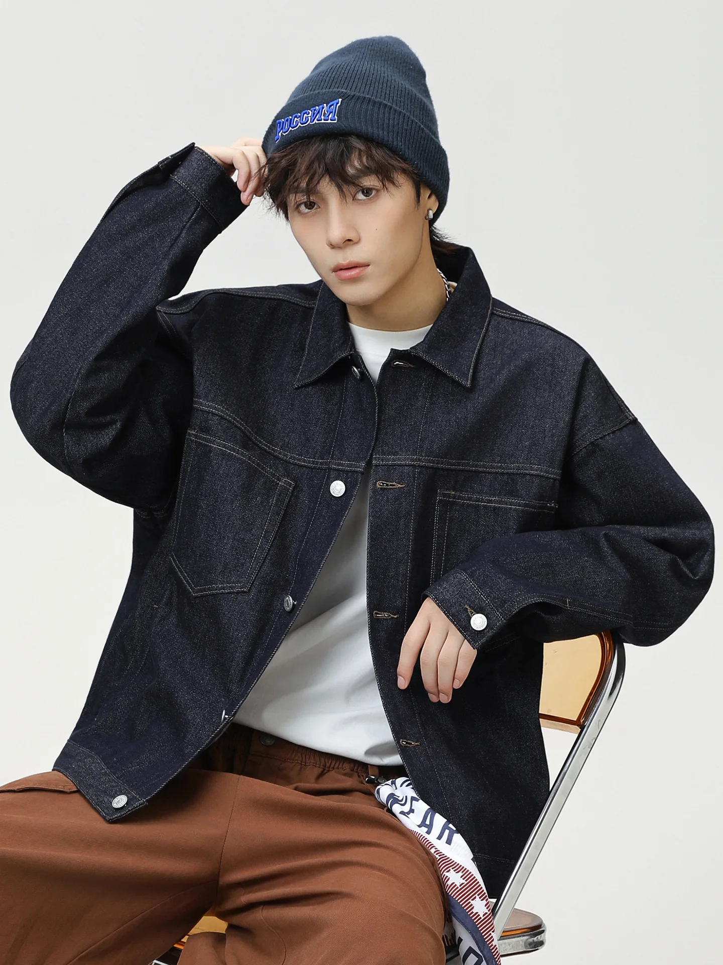 High Quality Men's Fashion Denim Leather Jacket