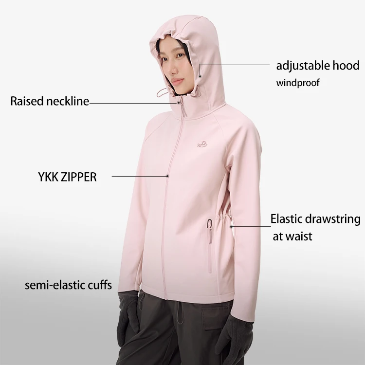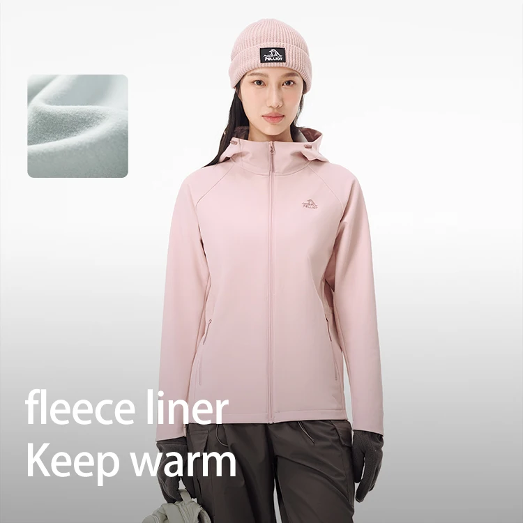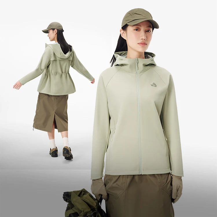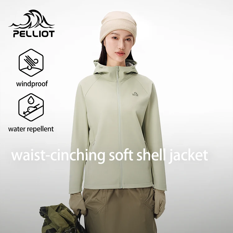 PELLIOT New Adjustable Hood Semi-elastic Cuffs Windproof Breathable Outdoor Hiking Women's Waisted Soft Shell Jacket