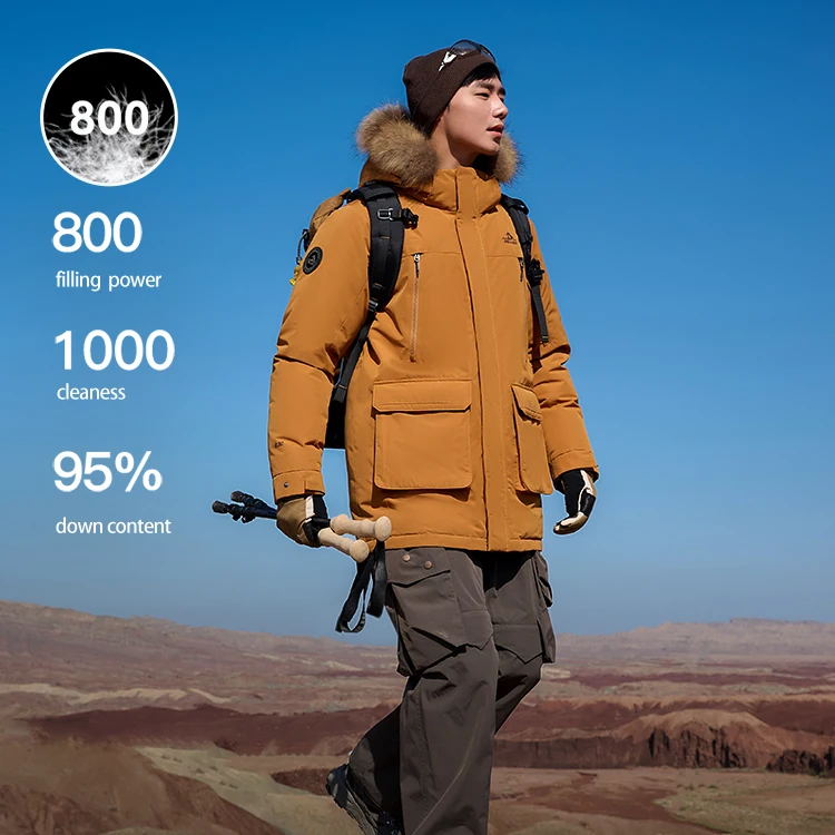 PELLIOT Winter Warm -30℃ Fur Hooded 10000mm Waterproof Men's New 800 Filling Power Goose Down Windproof Parka Down Jacket