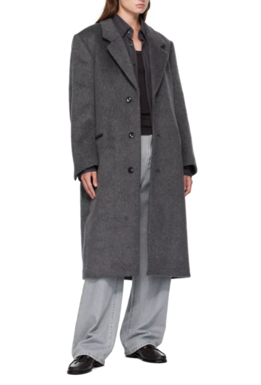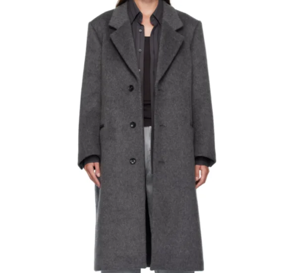 2026 Women Long Winter Wool Coat with Padded Shoulder Single-Button Closure Windproof and Breathable Slaph Design Notched Lapel