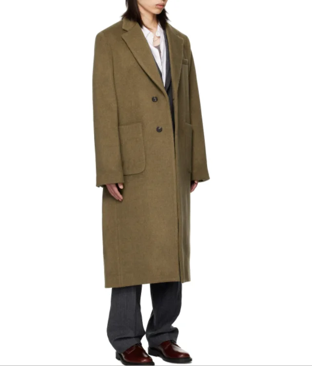 Custom Solid Color Long-Length Wool Coat for Men Professional Manufacturer Single-Faced Overcoat Single Button Plain Dyed Coat