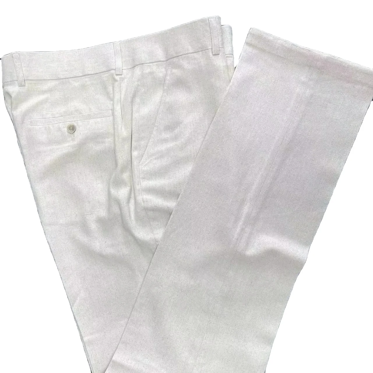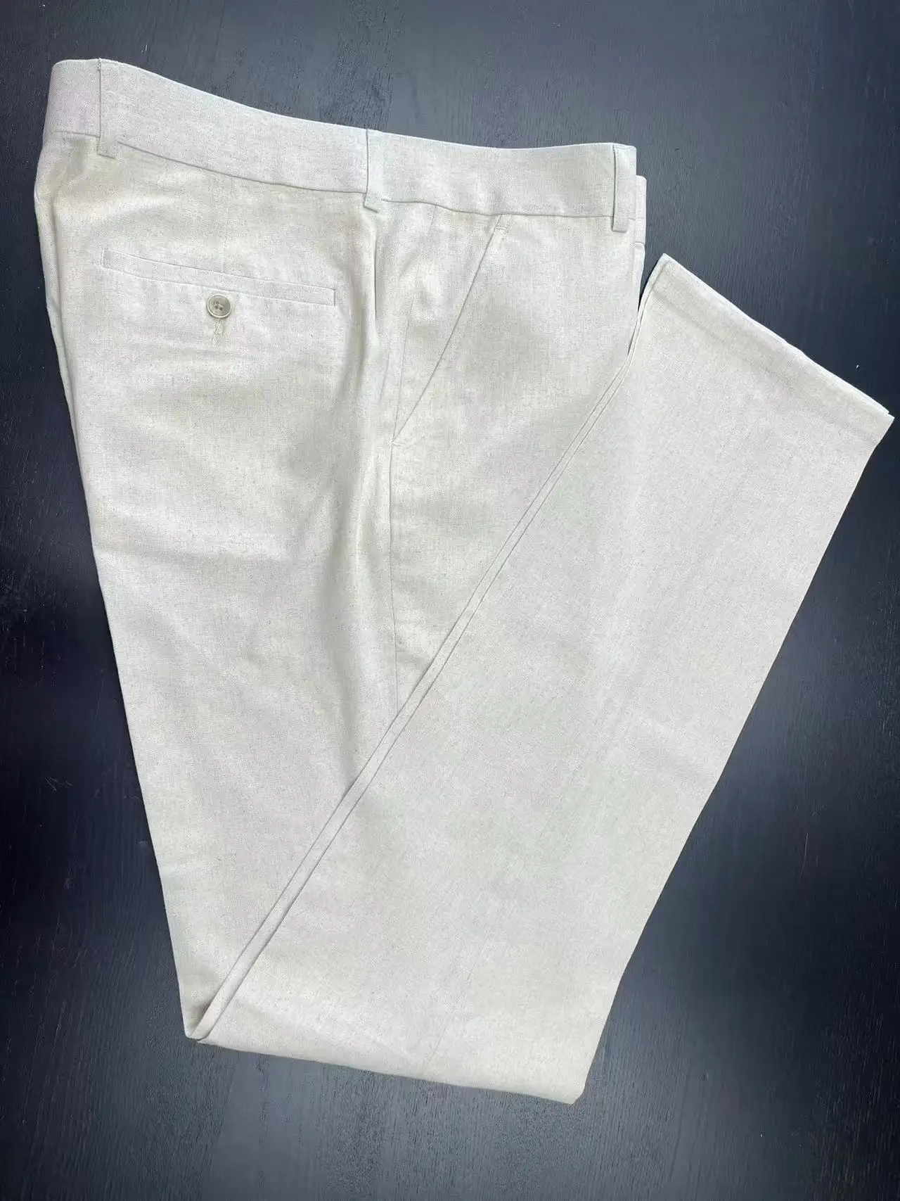 Men's Casual Loose Fit Breathable Linen Straight Leg Zipper Fly Pants Summer Thin Cotton and Linen Mid Waist Canvas Comfortable