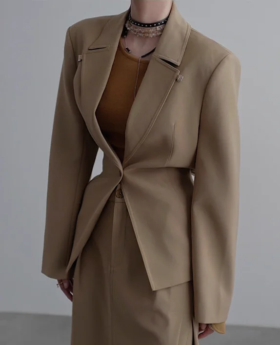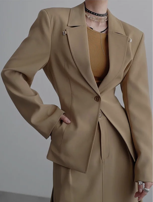 Women's Custom Designer Blazer Jacket High Quality Long Sleeved Wear Solid Color Casual Business Work Soft Coat for Spring Fall
