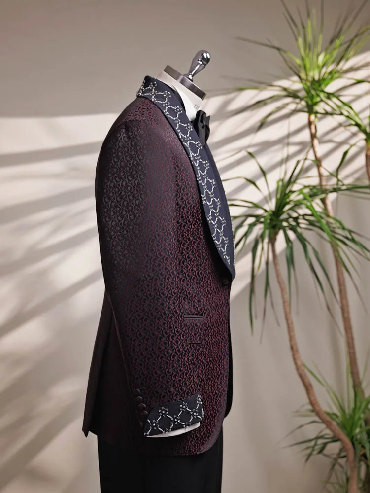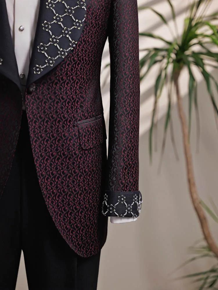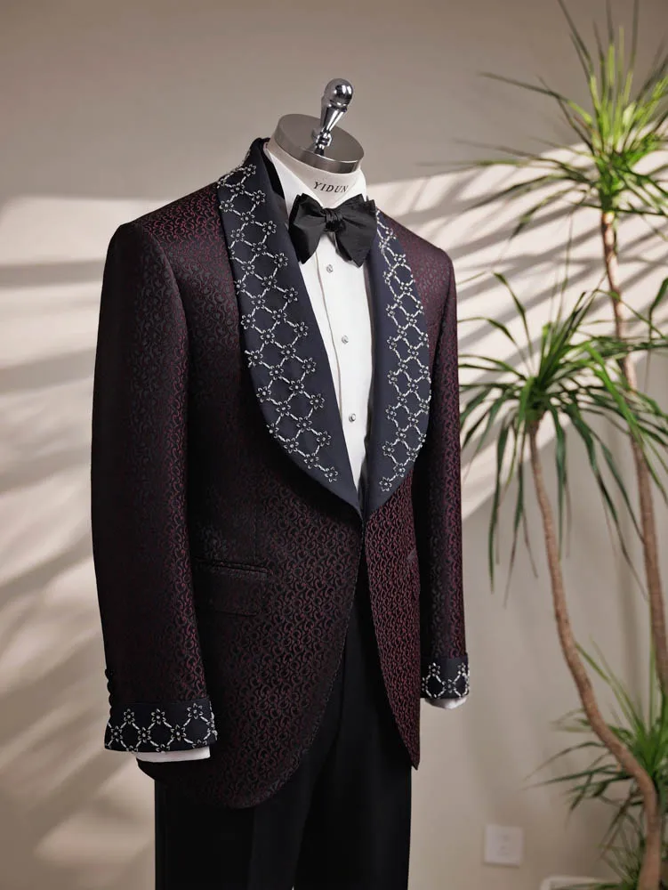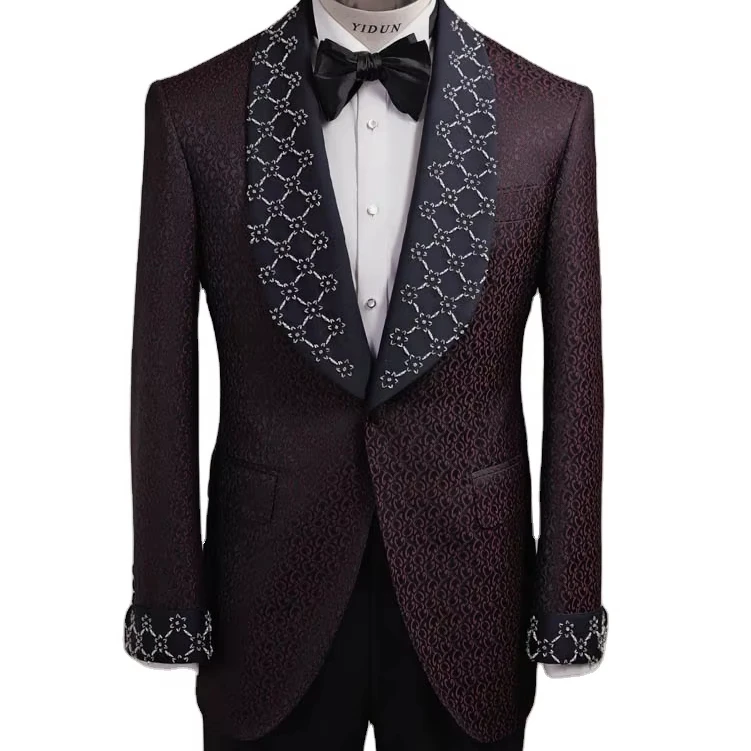 Custom Bespoke Men's Plus Size Dinner Dress Woolen Coat Pants Hand Beading Design Brick Red Breathable Fabric Zipper Fly Closure