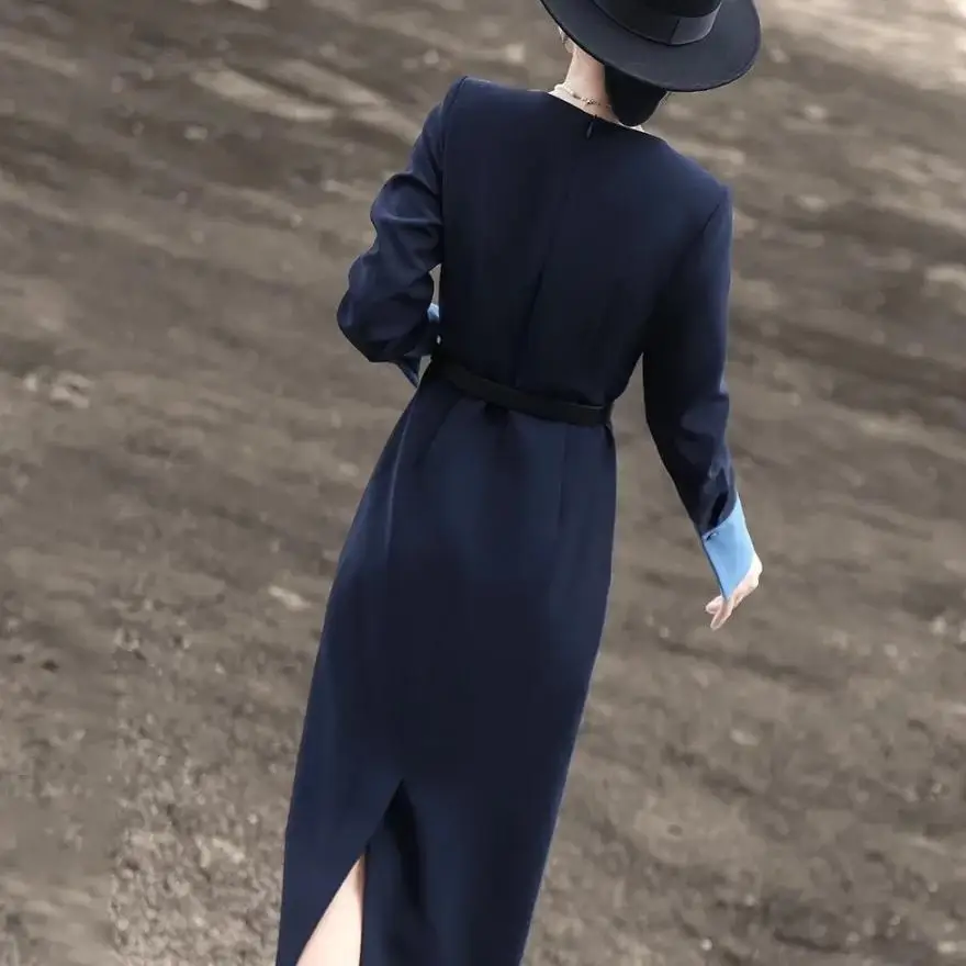 ZYHT 73902 Dark Green Blue Long Sleeve Simple Elegant Evening Dress Customize High End Women Clothing Manufacturer