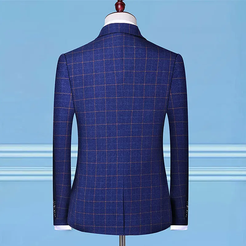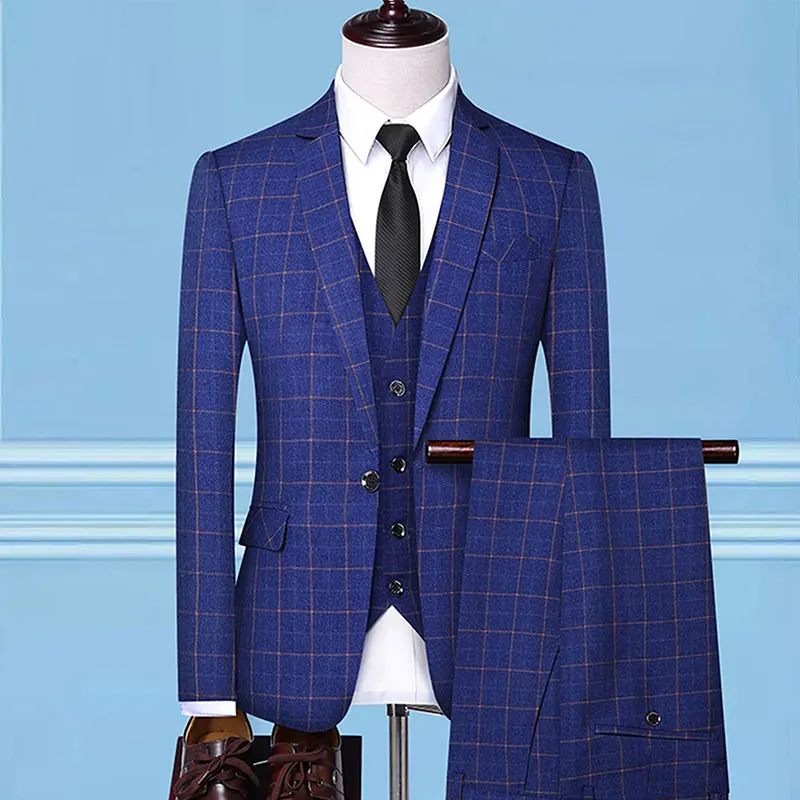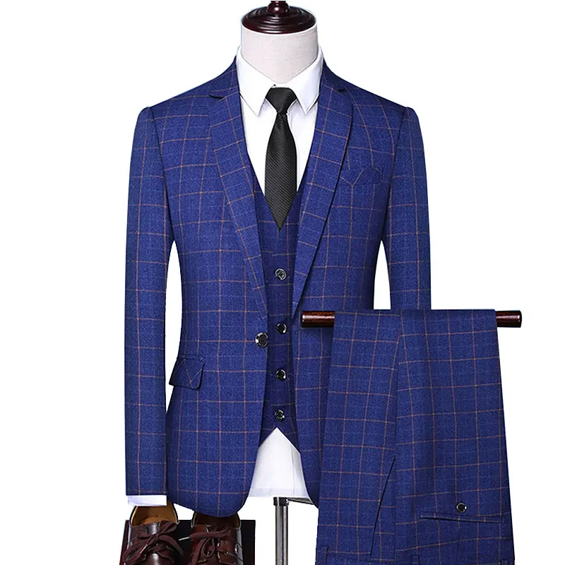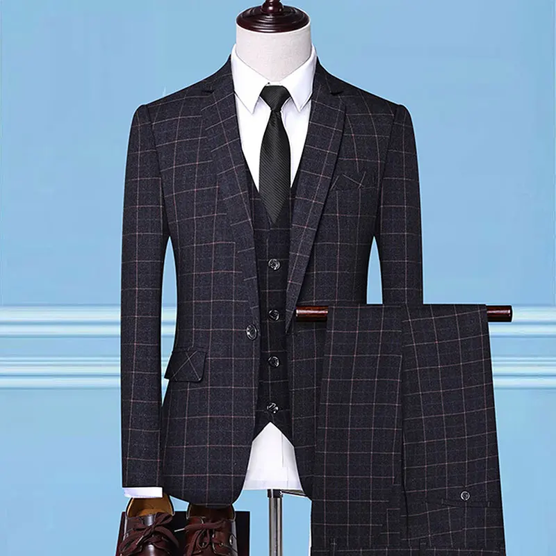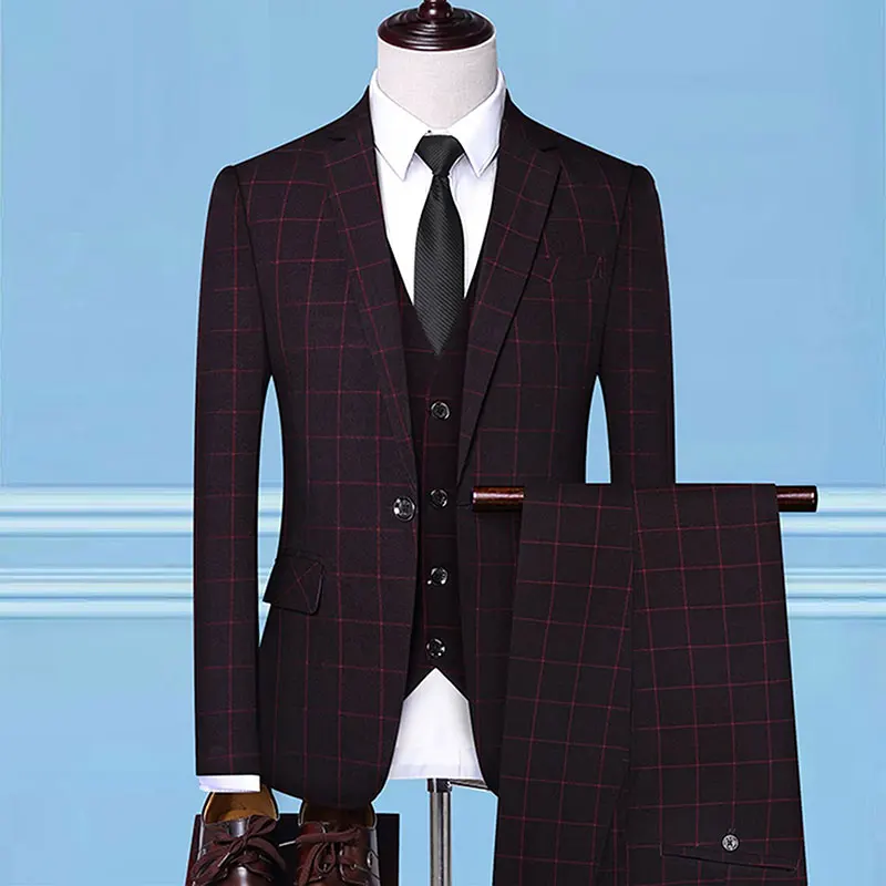 Source Manufacturers Wholesale Red Stripe Plaid Wedding Dress Best Man Fashion Suit Pants Vest 3PCS Set