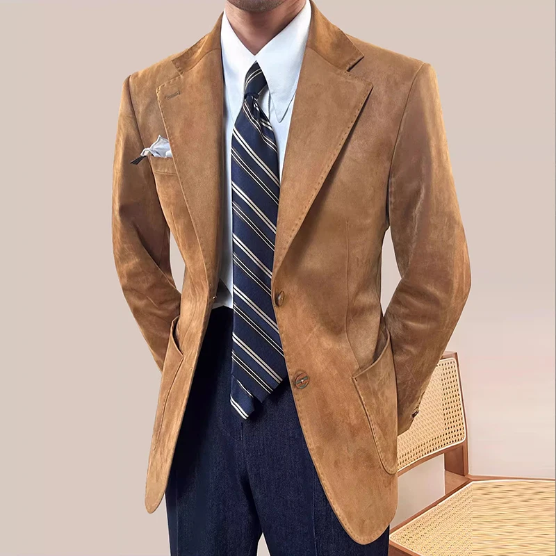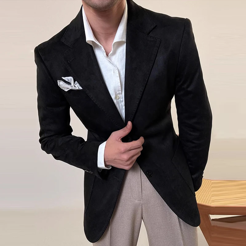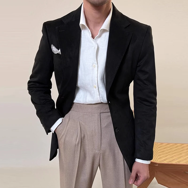 Customized Two Button High Grade Men's Suits Exquisite Deerskin Velvet for Formal Wedding Groom Business Solid Color Waterproof