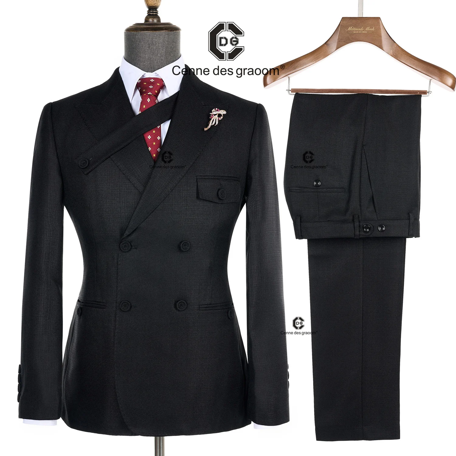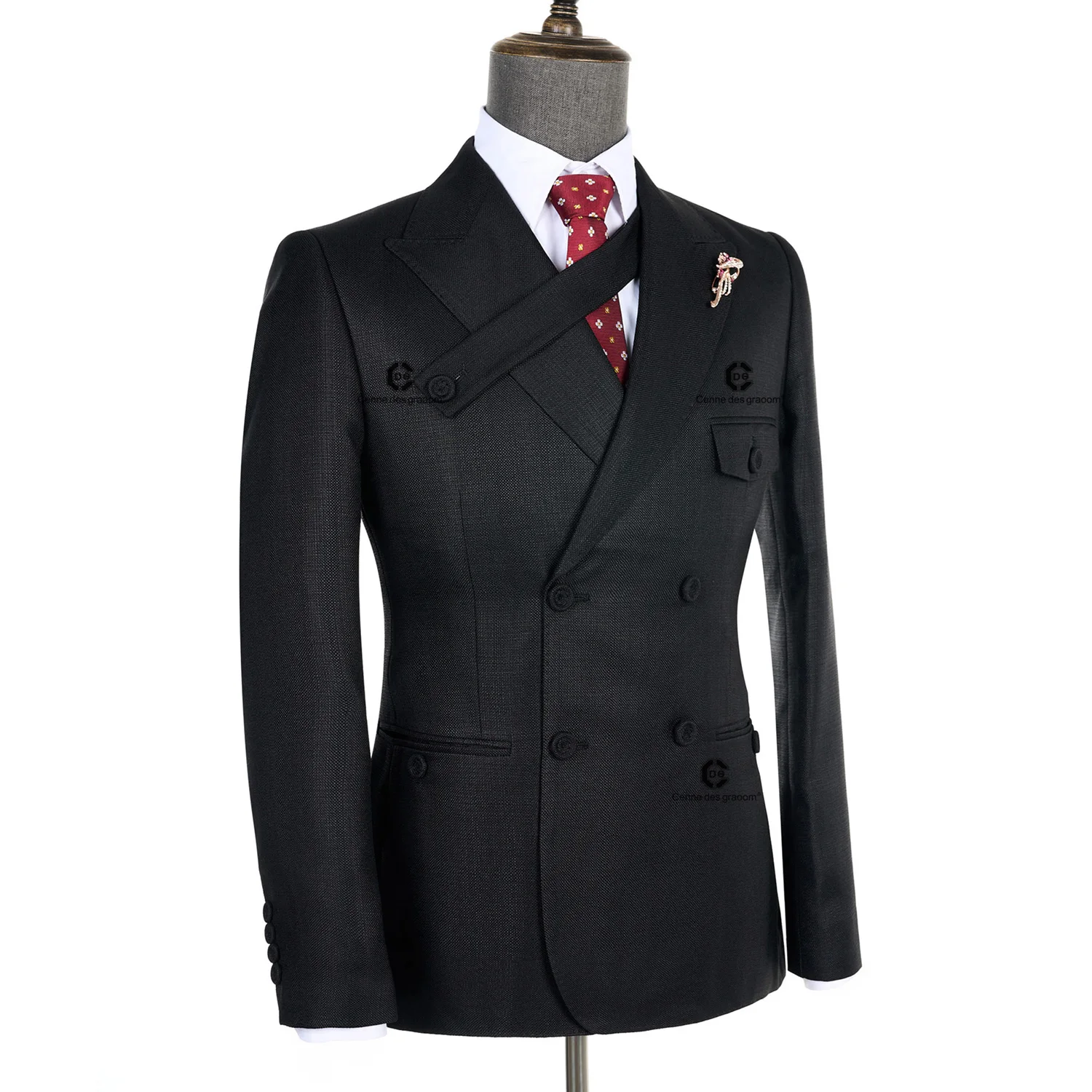 Cenne Des Graoom 2026 New Elegant Man Suits Double Breasted Hand Sewn Buttons 2 Pieces Set High Quality Slim Fit Wedding Party