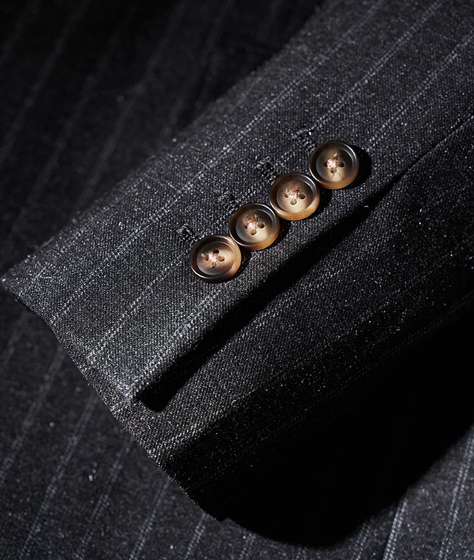 Men's Dark Grey Striped 3 Pieces Slim Business Peaked Lapel Single Breasted Double Vents High Quality Suit Set for Men