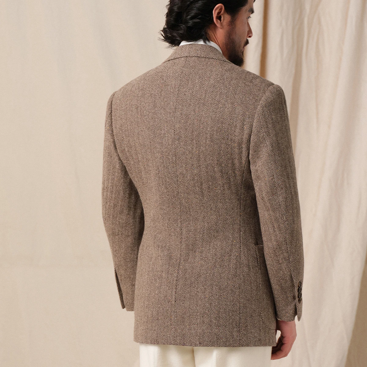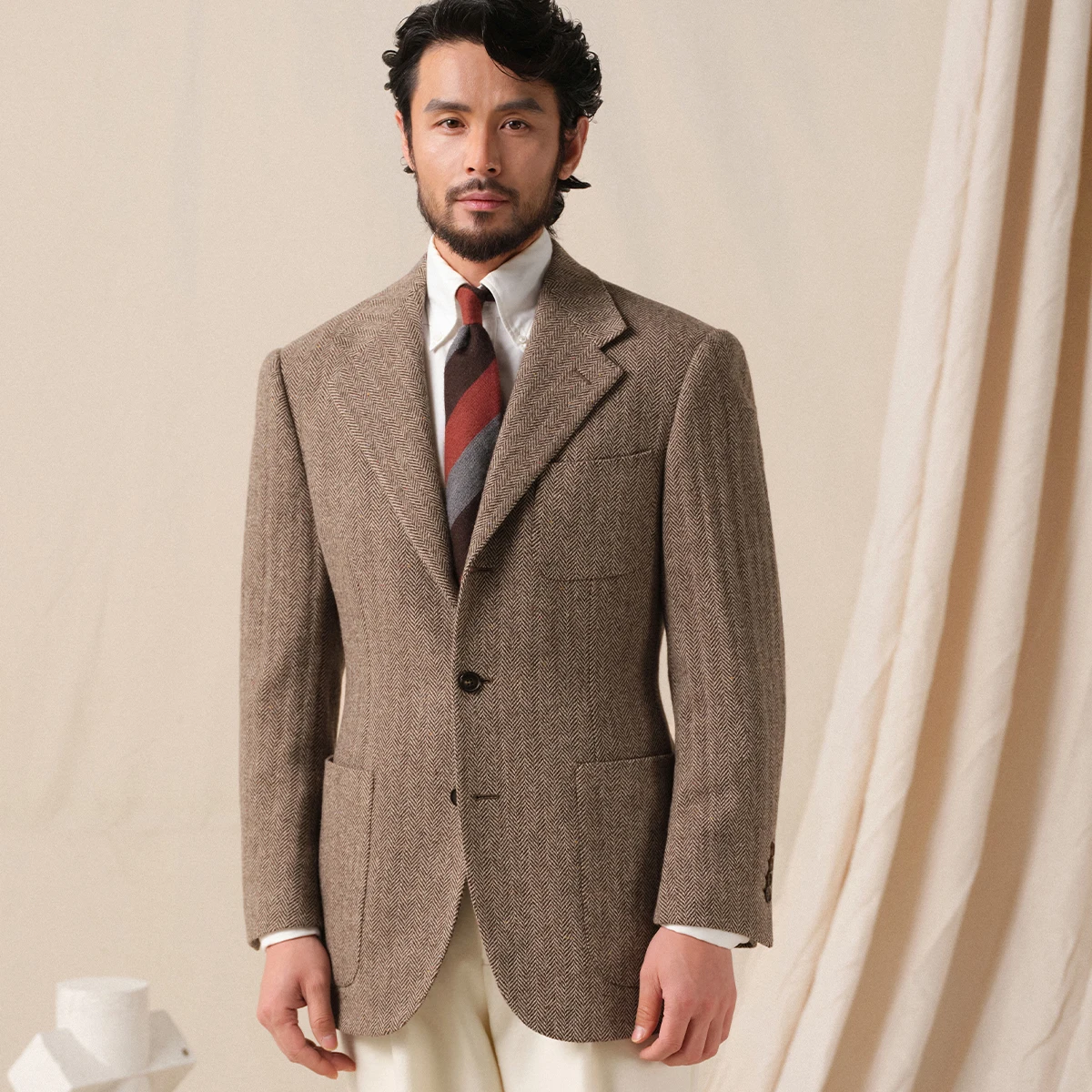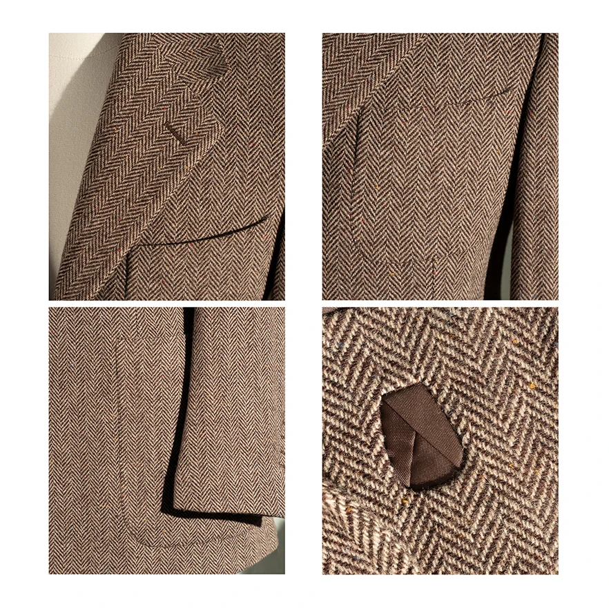 Retro Thickened 450g Heavyweight 100% Wool Coarse Spun Herringbone Patterned Suit Jacket for Men