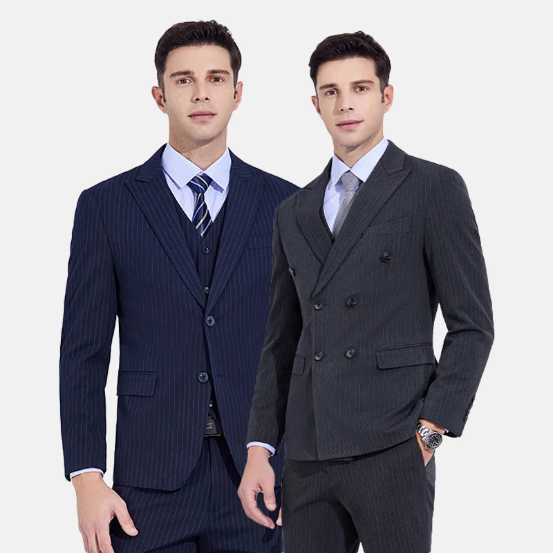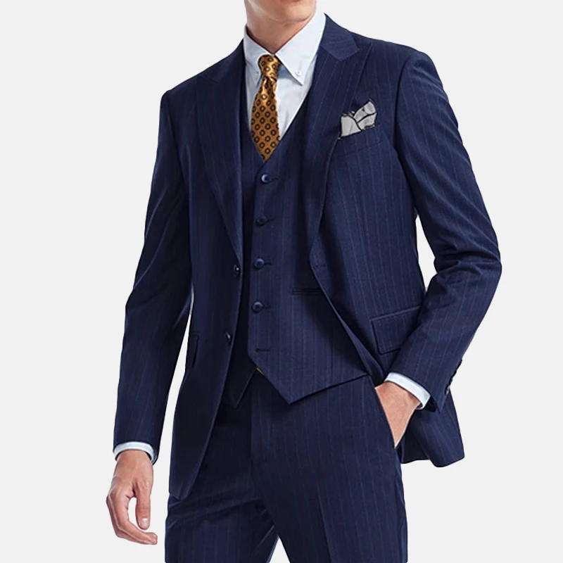 High Quality 3 Pieces Mens Suits Jacket Tailoring Formal Business Suit Set Striped Double Breasted Slim Fit Wedding Suits