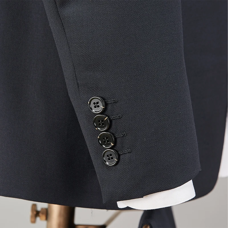 Men's Navy Blue Business Suit with Thousand Bird Grid Semi-Linen Lining Two-Piece Craftsmanship (Model HK8088-1)