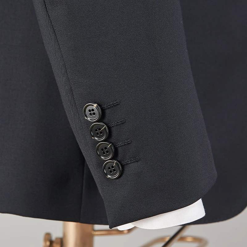Men's Gray Business Suit Two-Piece Wool Blend Regular Fit Open Front Flat Pants Breathable Wrinkle-Resistant Fabric (Model