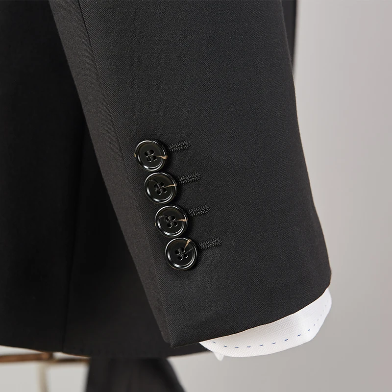 Men's 2-Piece Business Suit Black Polyester Serge Open Top Straight Leg Pants Breathable & Wrinkle Resistant Formal Office Style
