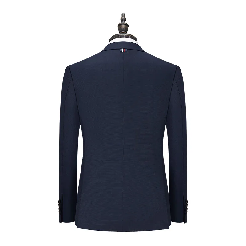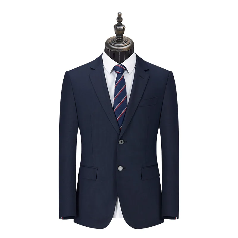 Men's Navy Blue Dress Suit Luxury Tailored Single Breasted Jacket High Quality Breathable Business Formal Wear Customizable