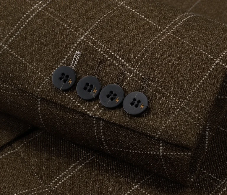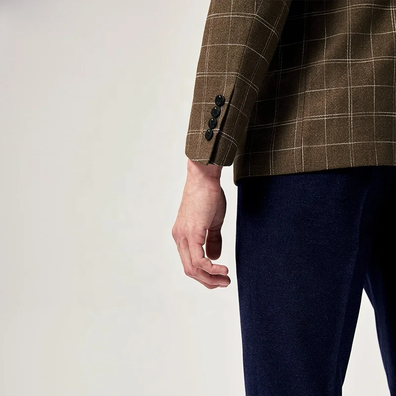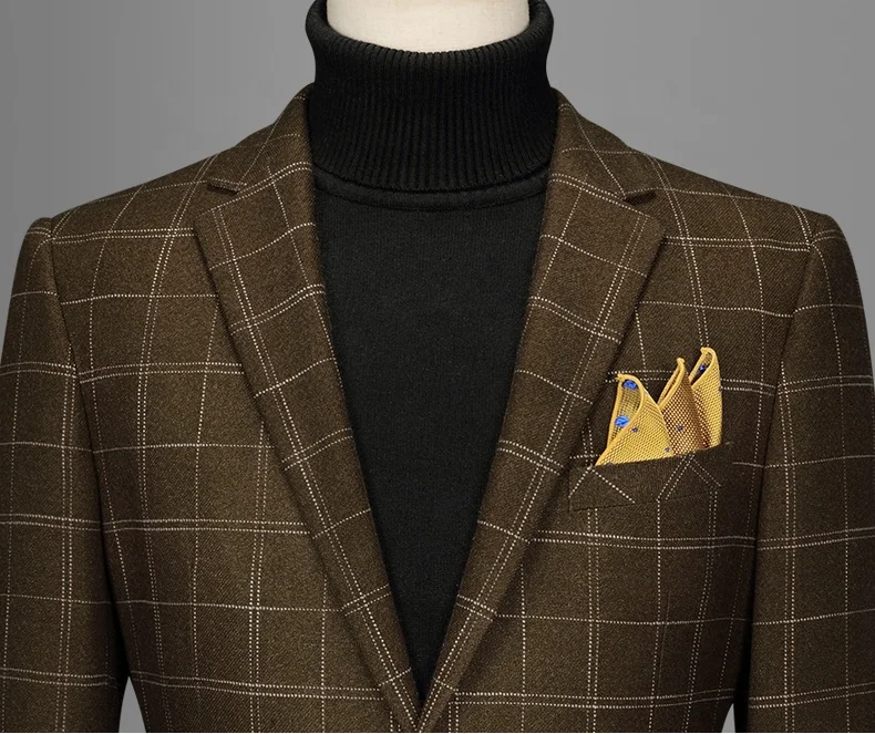 Datailor Latest Design Men's Slim Fit Brown Check Blazer Single Breasted Windproof Reversible Plus Size Casual Long Sleeve