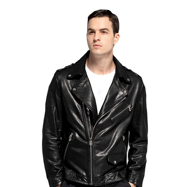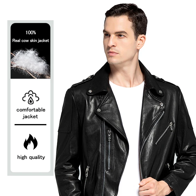 High Quality Washed Single Leather Motorcycle Suit, High-end Customized Men`s Cowhide Leather Jacket
