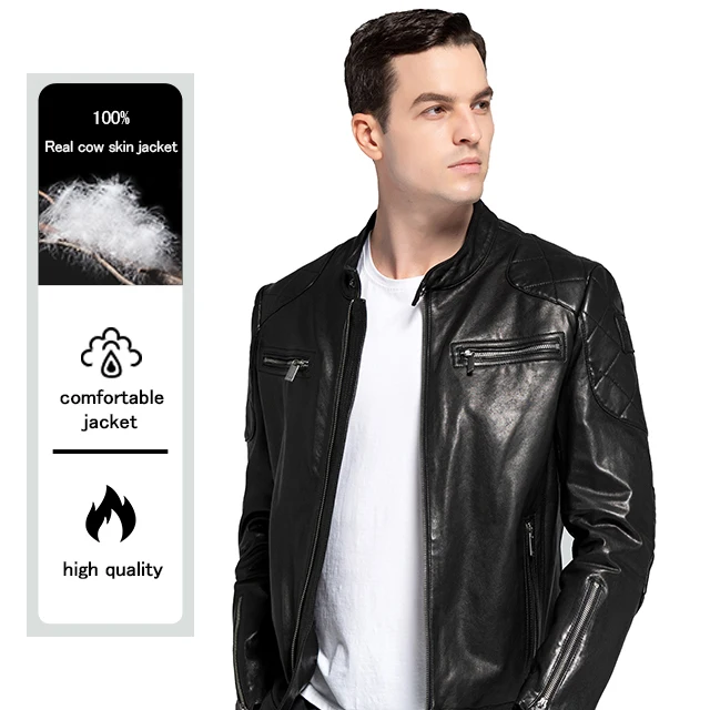 High Quality Men's Motorcycle Jacket Made of Genuine Cowhide Leather